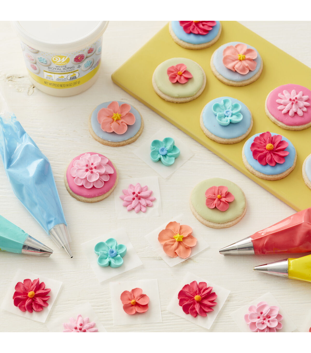 - Add Wilton icing colors (sold separately) to reach your perfect shade