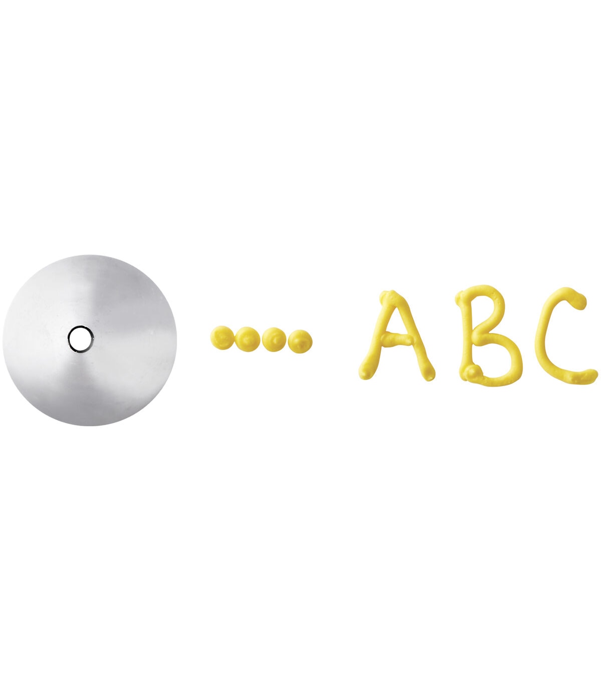 Add delicious details to decadent desserts! This round decorating tip is ideal for outlining, lettering, dots, stringwork, beads, lattice and other fine details. It's a great tool for any decorator and can be used with standard decorating bags and couplers. This stainless steel tip is engraved with its number for easy identification and will hold up to years of use. Top-rack dishwasher safe.