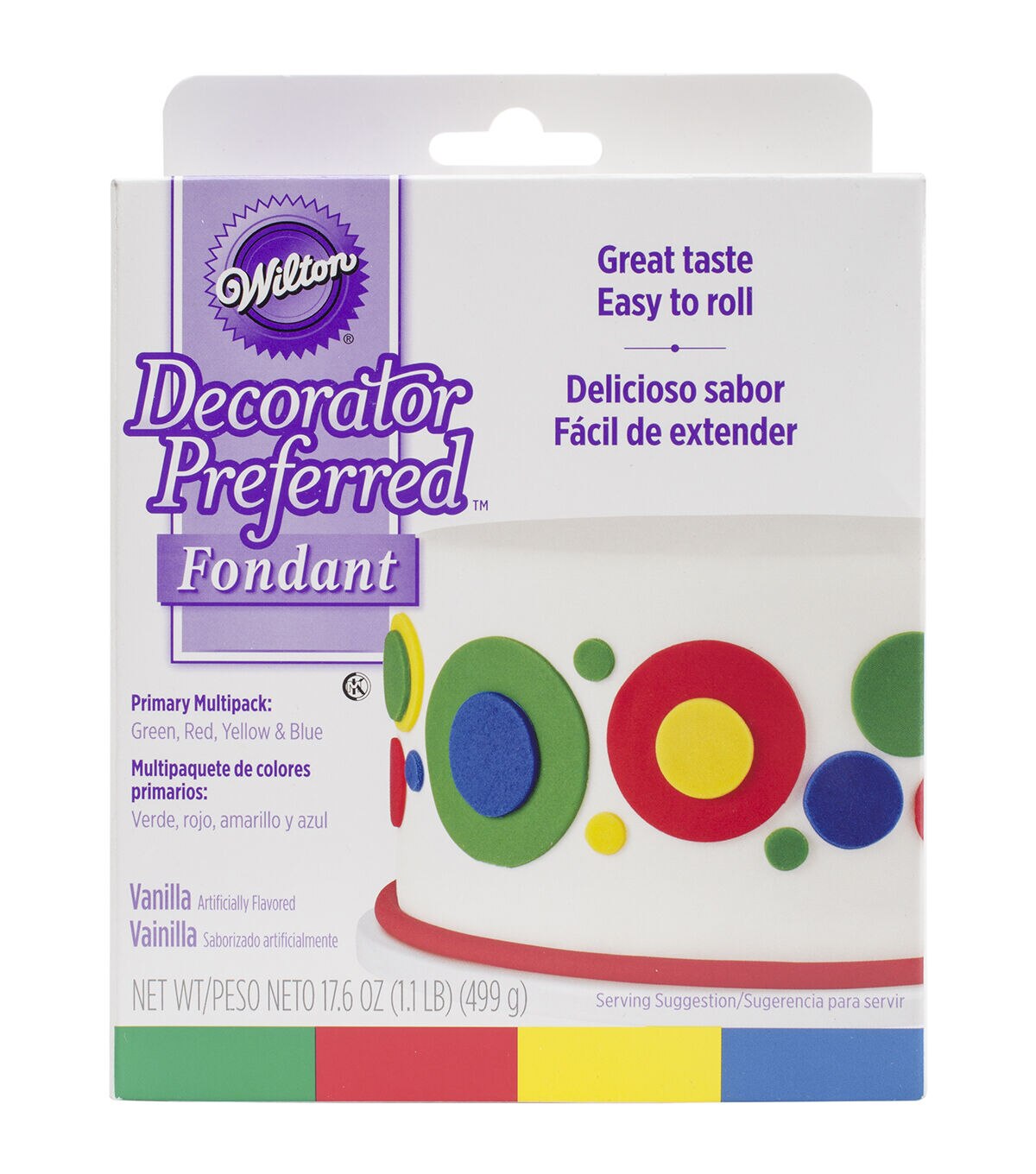 Convenient four-pouch assortments of primary or pastel are perfect for making multi-colored decorations. The color is already mixed in. . . no kneading, no mess, no guesswork. Great for flowers, borders and fun shapes. The 17.6 oz. package contains four 4.4 oz. packs. Certified Kosher.