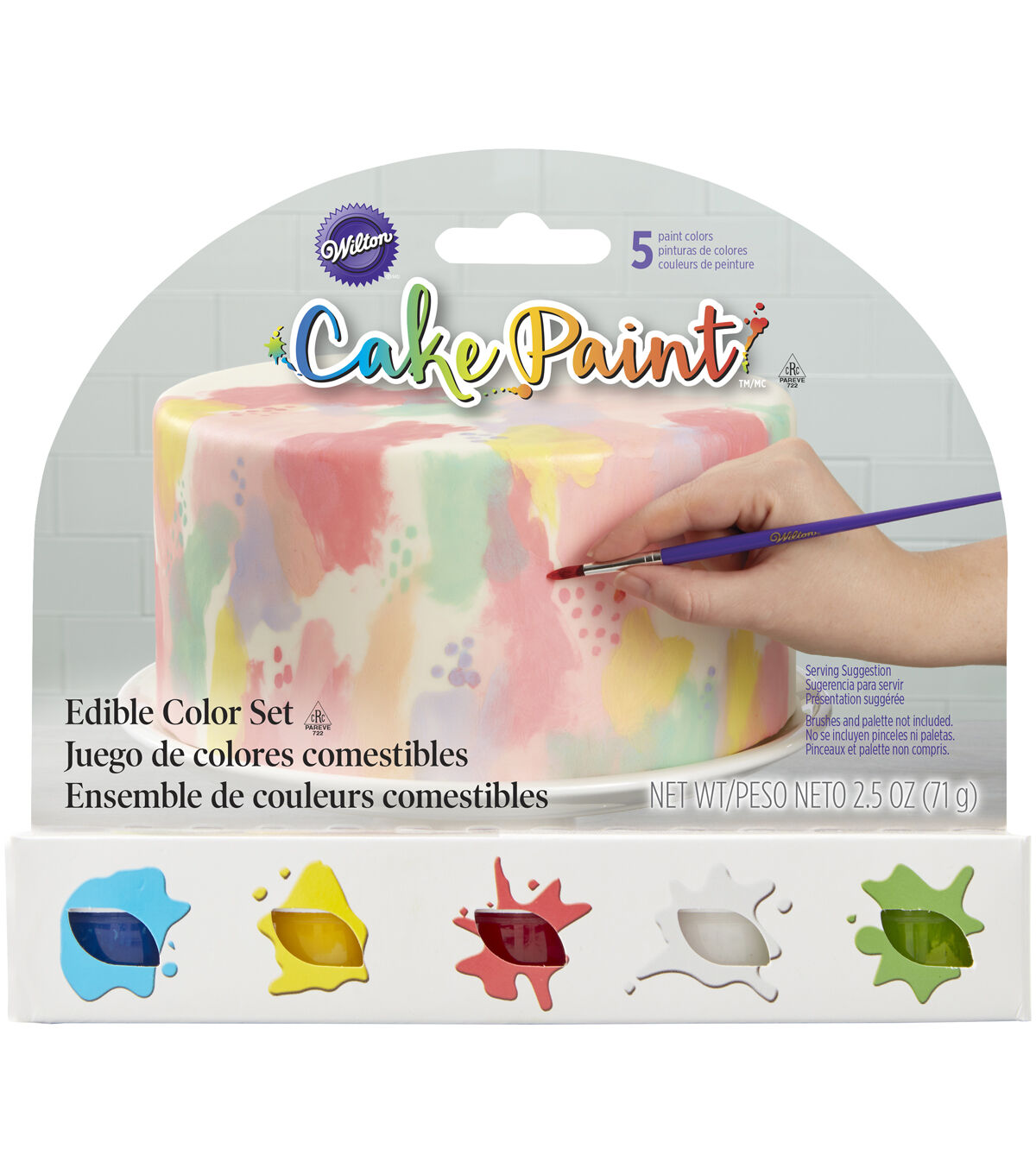 Your cakes are your canvas with this set of edible paints. It contains five opaque colors including red, blue, green, yellow and white. they can be used on their own or blend two or three together to create almost any shade. Use Wilton decorating brushes (sold separately) to turn your cakes into your own individual works of art.
