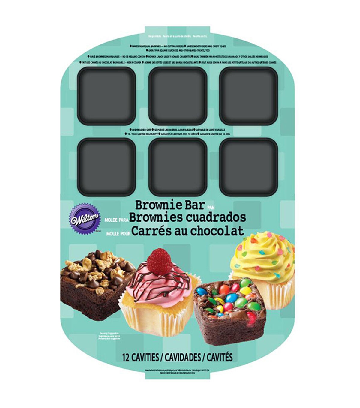 WILTON-Brownie Bar Pan. A perfect way to create mini desserts for parties and more! This package contains one 15-3/4x10-3/4 inch pan with twelve 12-1/2x2-1/2 inch brownie bar cavities. Dishwasher safe. Imported.