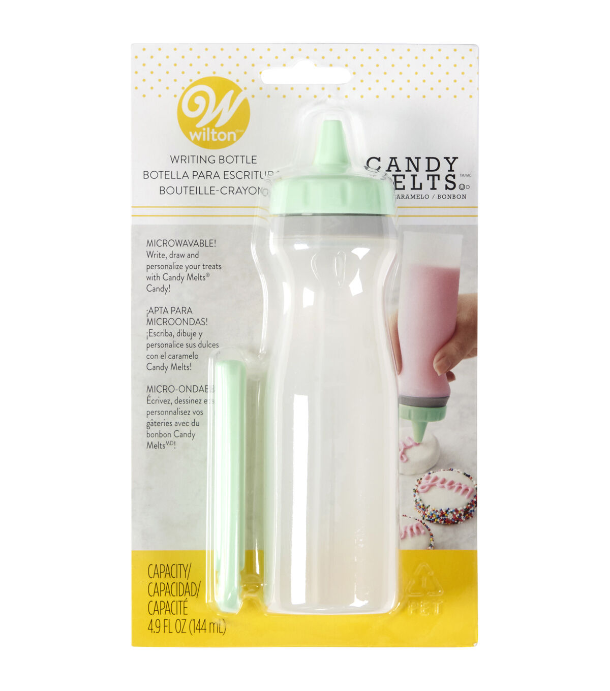 Easily write, drizzle and decorate on all your cakes and sweets with the microwave-safe Candy Melts candy writing bottle. The narrow tip makes it easy to personalize your treats with gorgeous cursive or bold print, and the included bottle clip helps maintain consistent pressure as you work for professional results. You can melt candy right in the bottle for decorating all your treats.