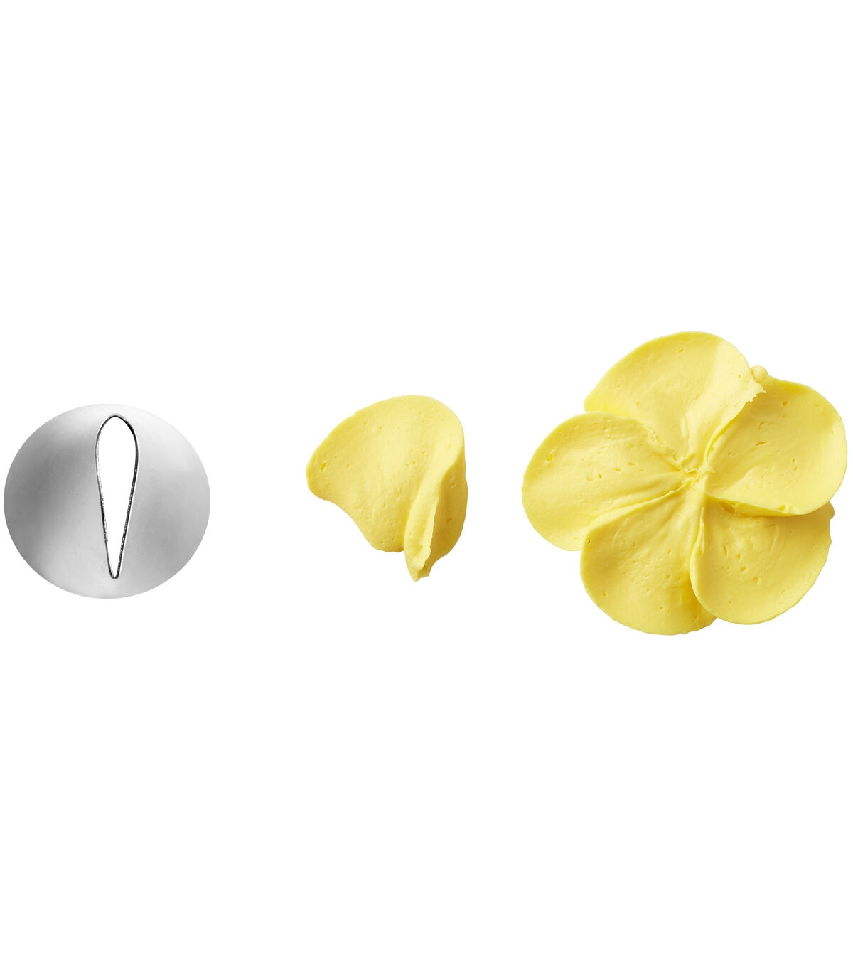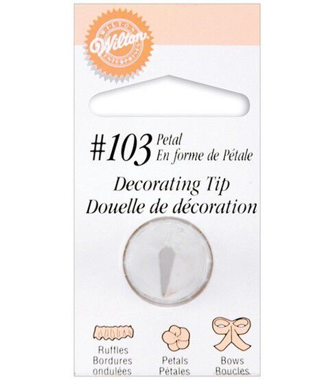 Perfect your petal piping with this small petal tip. This decorating tip pipes flower petals, ruffled borders, swags and more, making it a great tool for any decorator. Works with standard decorating bags and couplers. This stainless steel tip is engraved with its number for easy identification, and holds up to years of use. Top-rack dishwasher safe.