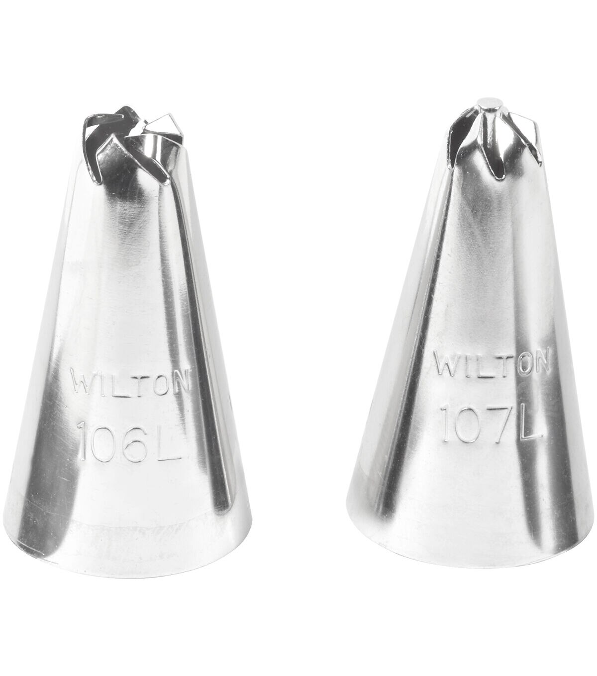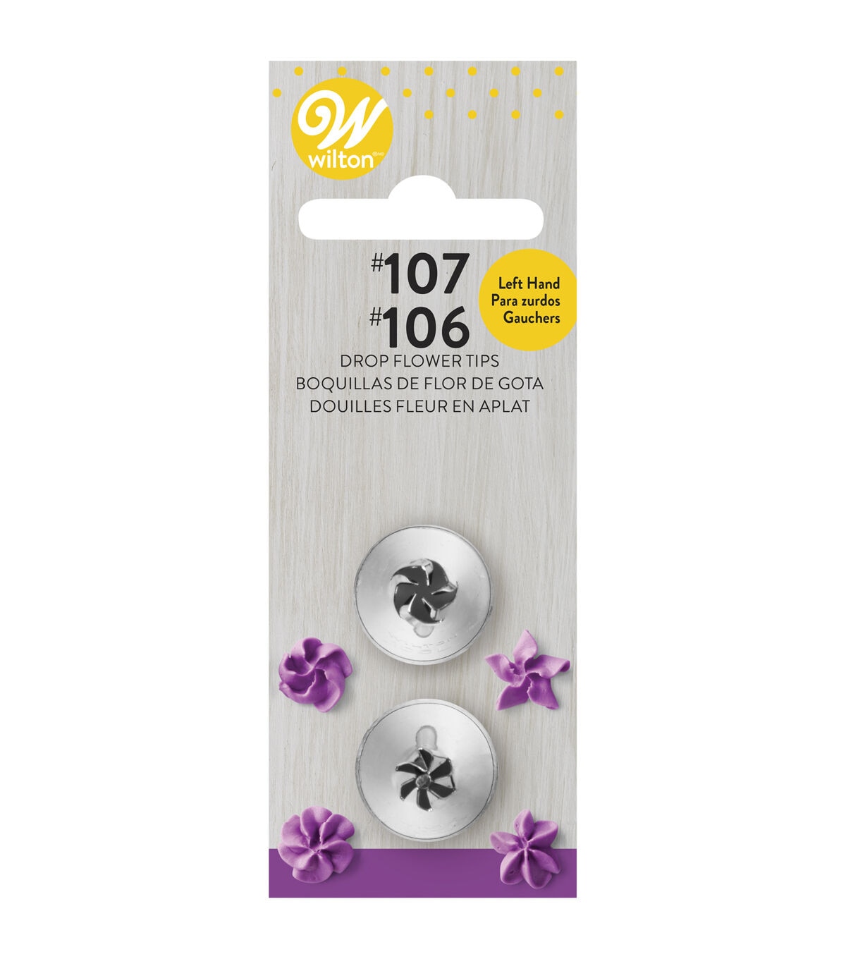 Now lefties can achieve the same beautiful flowers as right-handed decorators! This set includes one Left #106 and one Left #107 for making swirled flowers. Each one is made of nickel-plated brass and fits standard bags and couplers.