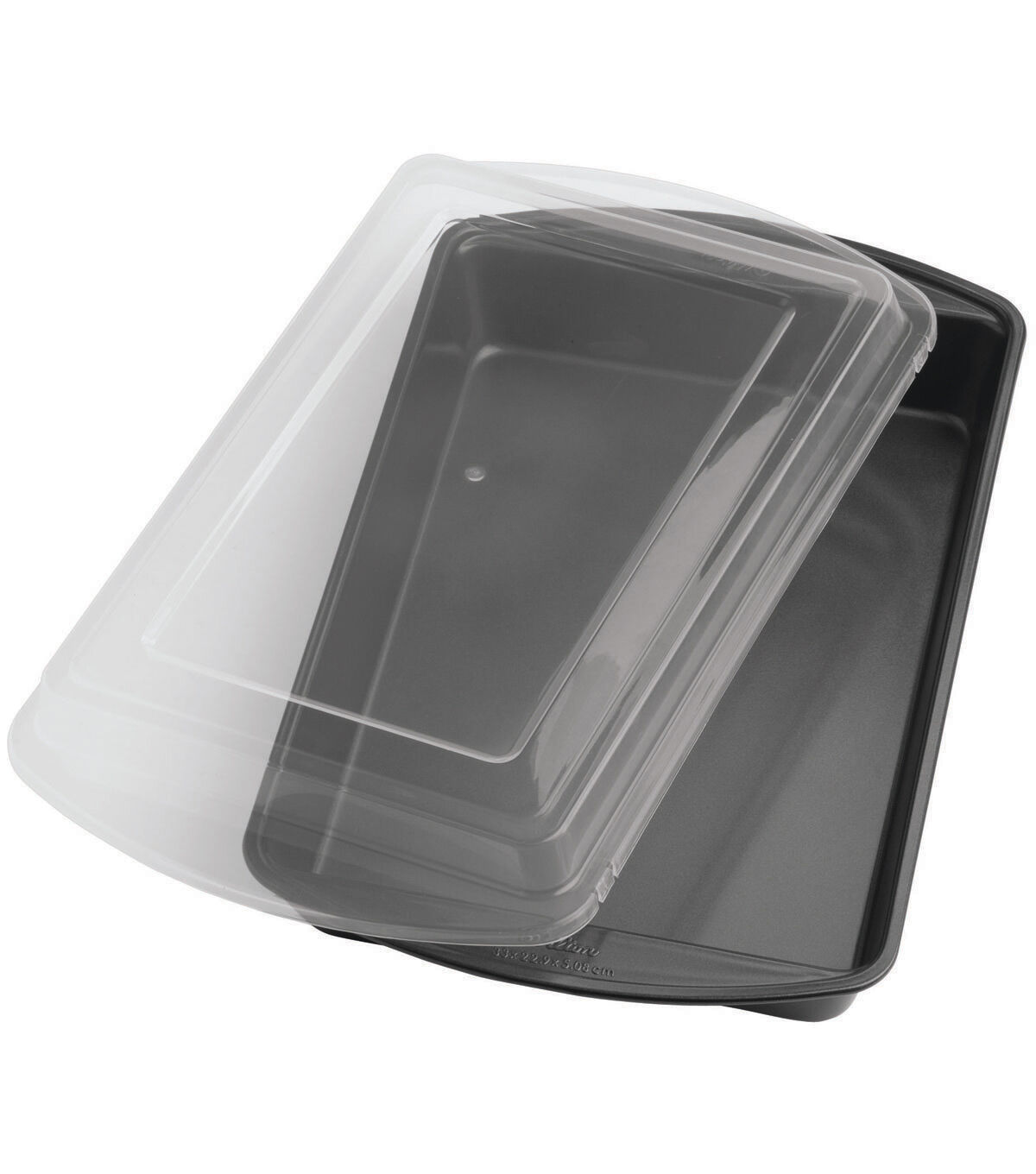 Perfect Results premium bakeware is built with all the right qualities for better baking results. Heavy-gauge construction spreads heat evenly and prevents warping. The non-stick surface features a reinforced coating that provides quick release and easy clean-up. Convenient handles are designed for easy handling in and out of the oven--even while wearing oven mitts. The handles also have the pan dimensions embossed on them for quick and easy reference. This package contains one 9x13 inch cake pan and one plastic cover.