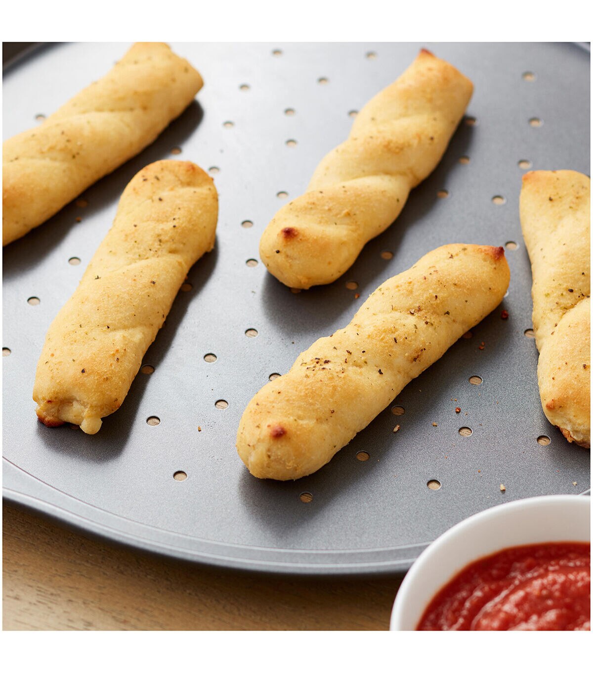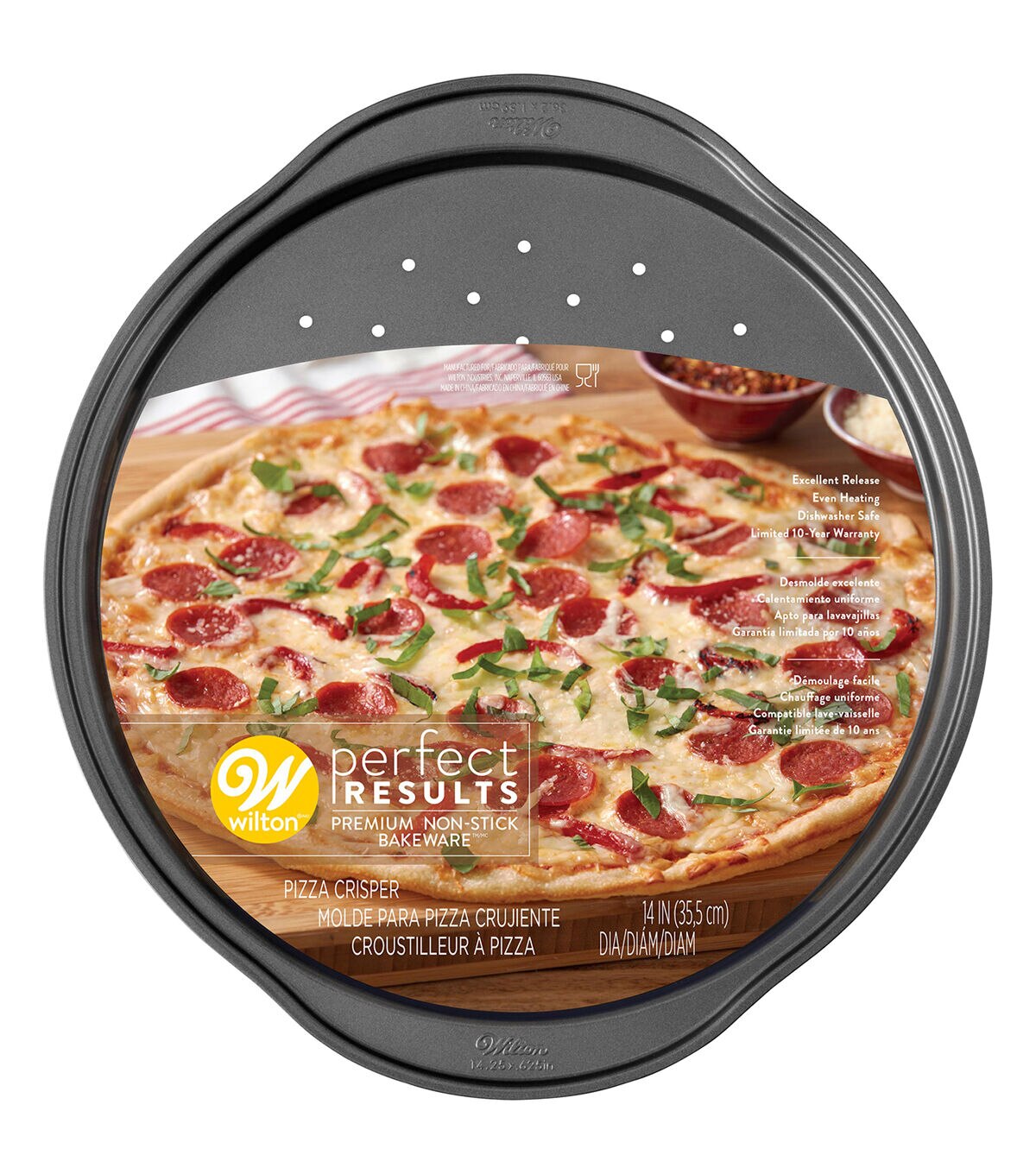 Calling all crispy pizza lovers: this is the pizza pan for you! The perforated design lets air flow through to give you a nice, crispy crust.