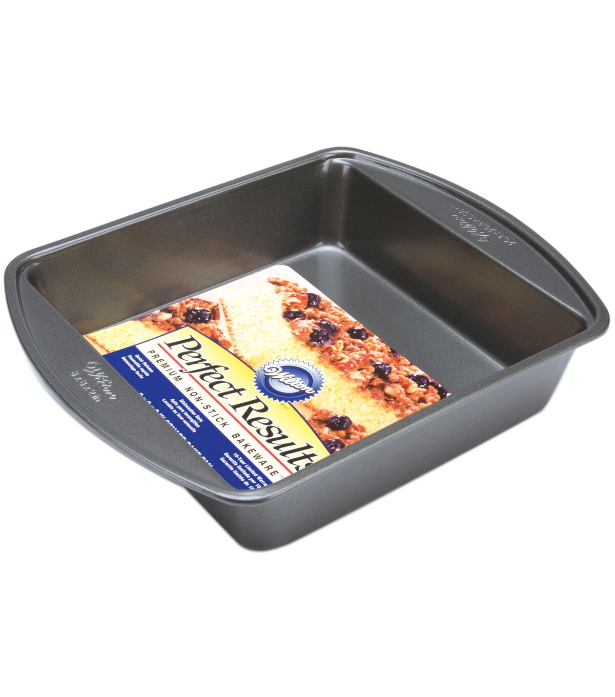 Perfect Results premium bakeware is built with all the right qualities for better baking results. Heavy-gauge construction spreads heat evenly and prevents warping. The non-stick surface features a reinforced coating that provides quick release and easy clean-up. Convenient handles are designed for easy handling in and out of the oven--even while wearing oven mitts. The handles also have the pan dimensions embossed on them for quick and easy reference. This package contains one 8-inch square cake pan.This product contains: Steel (Iron, Aluminum, Zinc, Manganese, Phosphorus). For more information about the chemicals in this product, visit/Para más informacíon sobre los químicos en este producto visite https://wilton.com/california-ab-1200/.