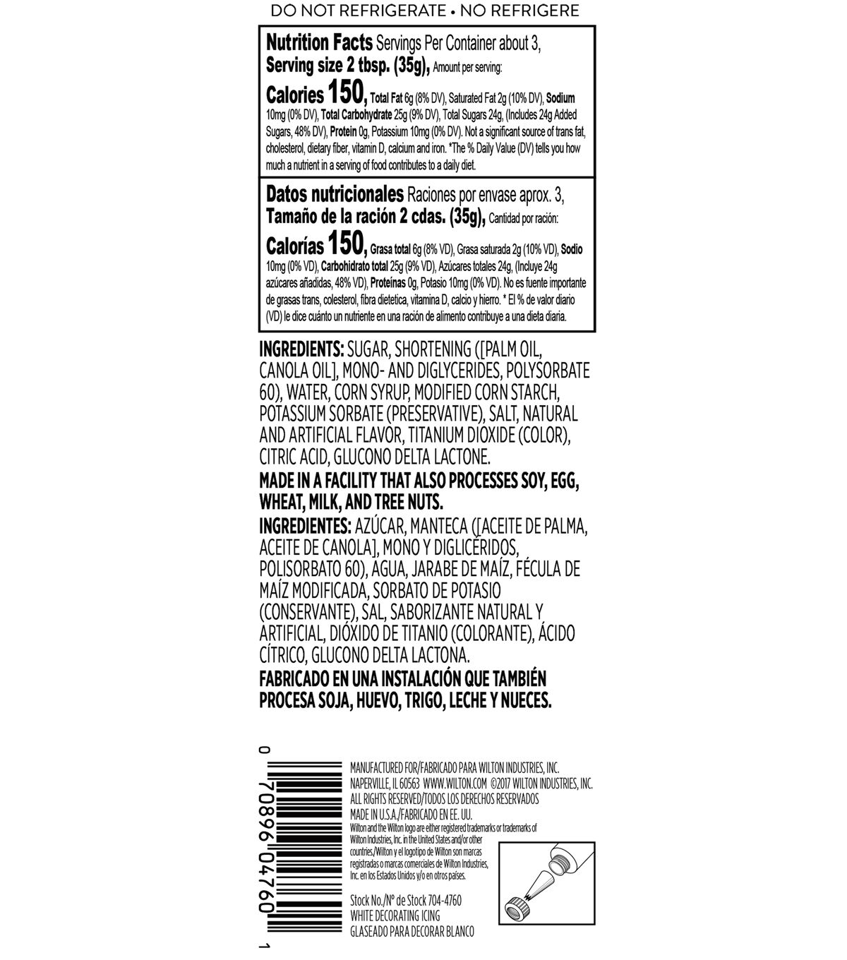 Decorate your treats with ease using this ready-to-use white icing tube. Great for adding decorations to a birthday cake, a batch of cupcakes or some holiday cookies, this easy-to-use frosting tube can be fit with any standard Wilton tip and coupler. No need for a decorating bag! Simply use a standard coupler to attach your tip right to the tube, then have fun piping flowers, stars, borders, shells and more. The vanilla flavor of this frosting compliments almost any cake flavor so your treats are sure to look and taste amazing. When you're done, simply place the cap back on the frosting tube and store it at room temperature until you're ready to use it again.