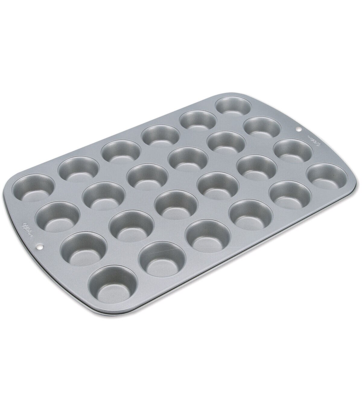 Bake a delicious batch of chocolate chip muffins in the Wilton Recipe Right Mini Muffin Pan. Made of heavy-gauge material, this bakeware has an efficient non-stick coating for easy lift and quick cleanup. This muffin pan features ready-reckoner handles with embossed pan dimensions. With its uniform heat distribution feature, this pan makes 24 perfectly baked muffins in minutes!