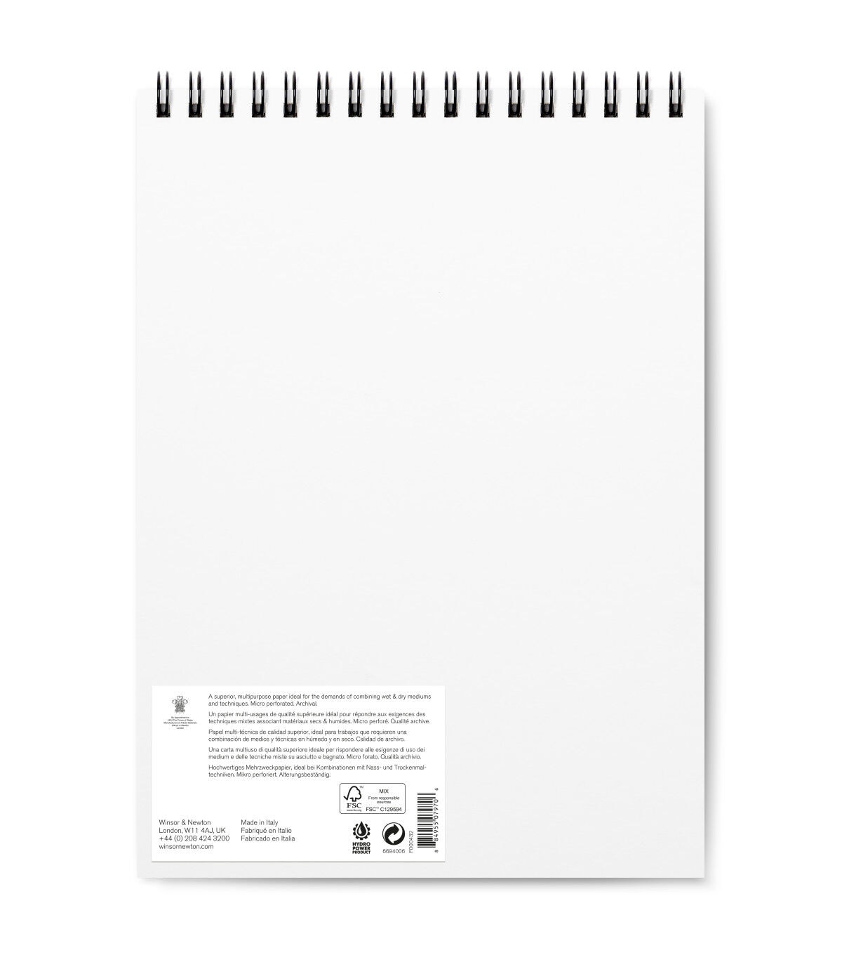 These pads from Winsor & Newton contain versatile, multi-purpose mixed-media paper for all wet and dry techniques. Free of optical brighteners, it is acid-free paper and of archival quality for stability and resistance to ageing. It is made using hydroelectric power to reduce greenhouse emissions and FSC certified to protect forests. Each wire-bound pad contains 30 micro-perforated 250gsm sheets.