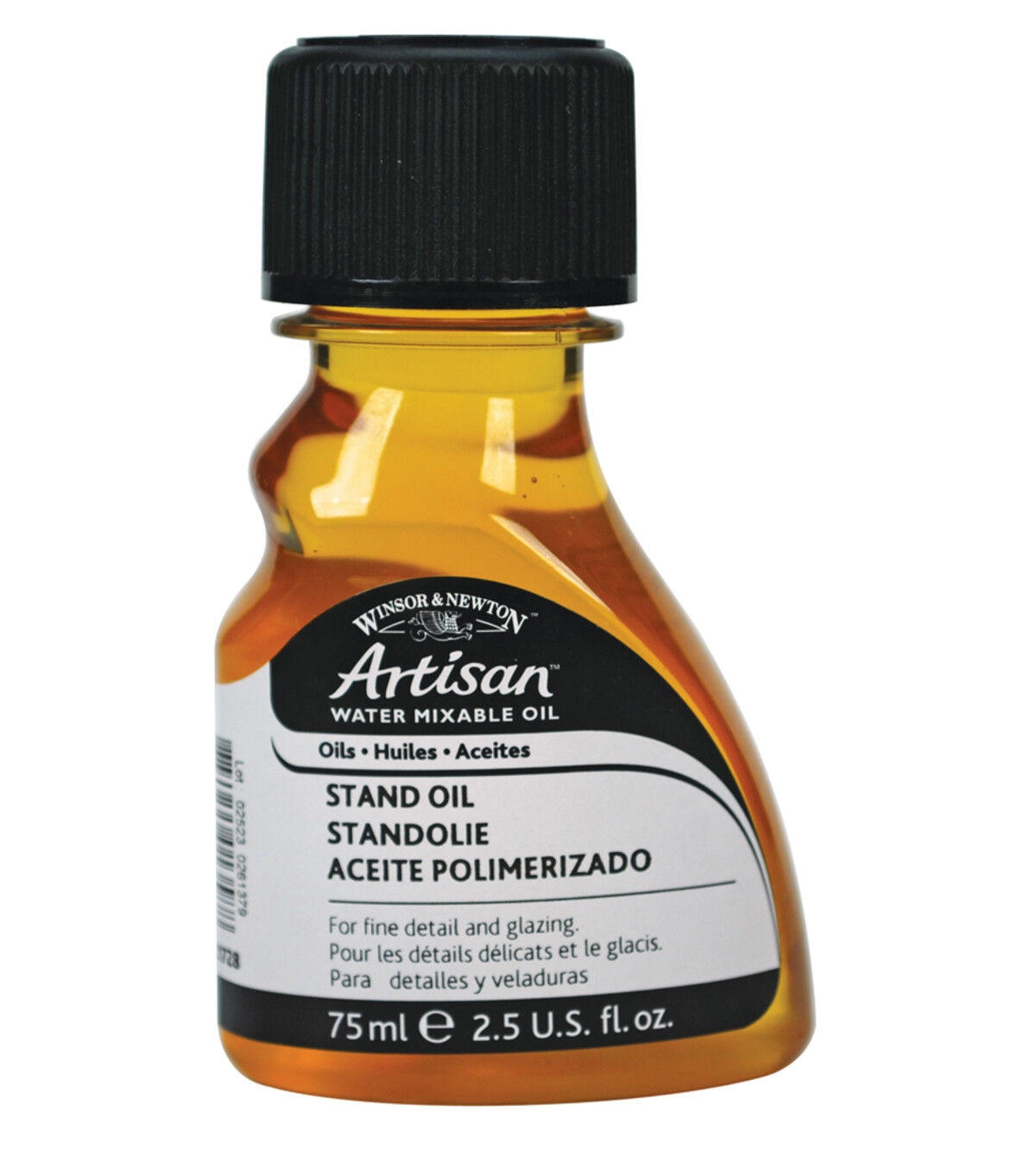 The flow and leveling of Winsor & Newton Artisan water-soluble oils is improved by using slow drying stand oil. It is excellent for glazing and producing fine detail, as it smooths brushwork out for a glossy, leveled effect.