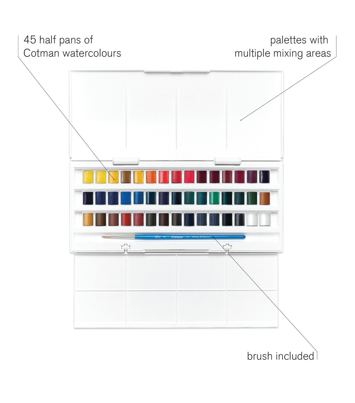 This large set contains 45 Cotman half pans covering the full range of colors plus one extra of each of the most popular colors.