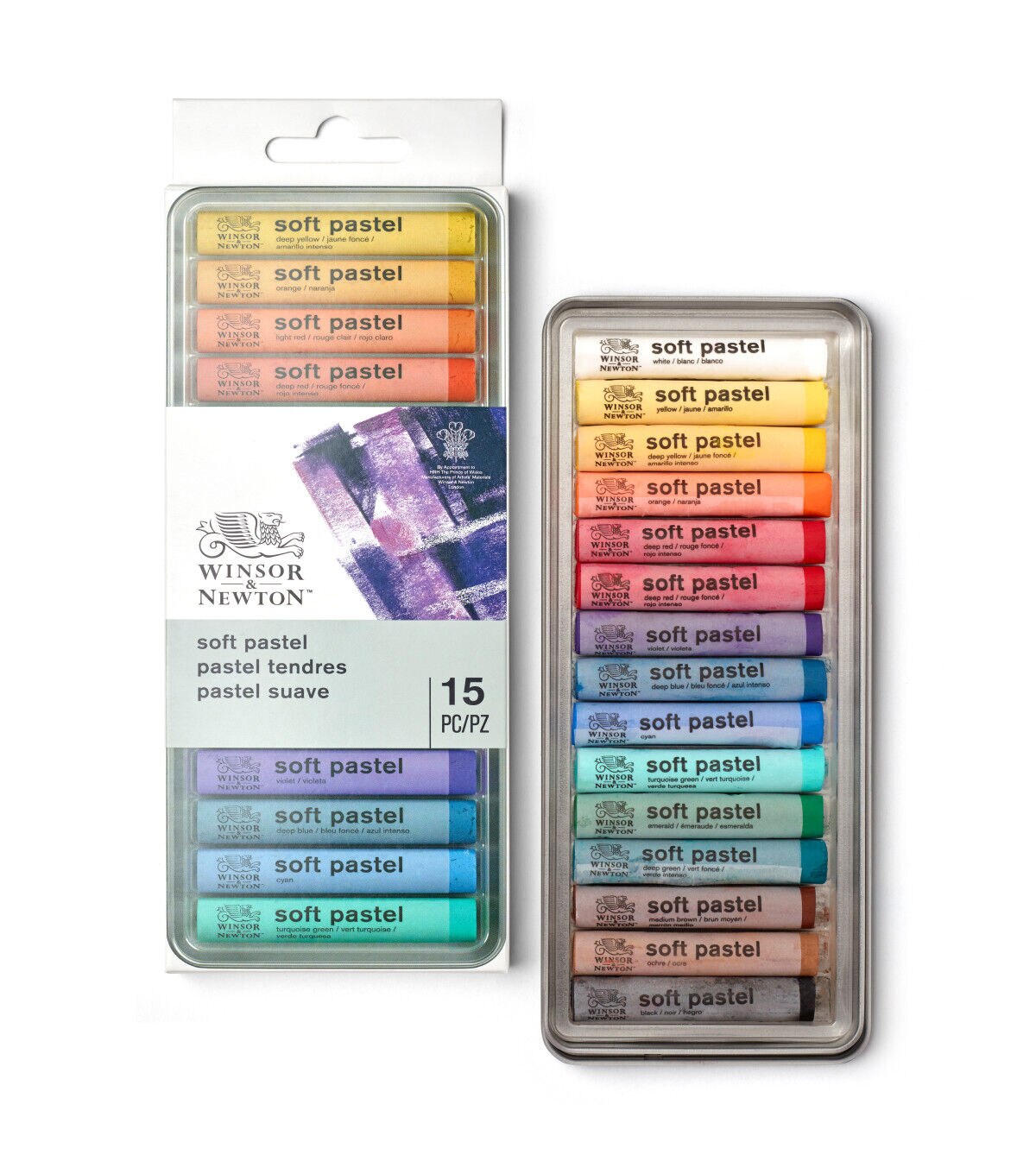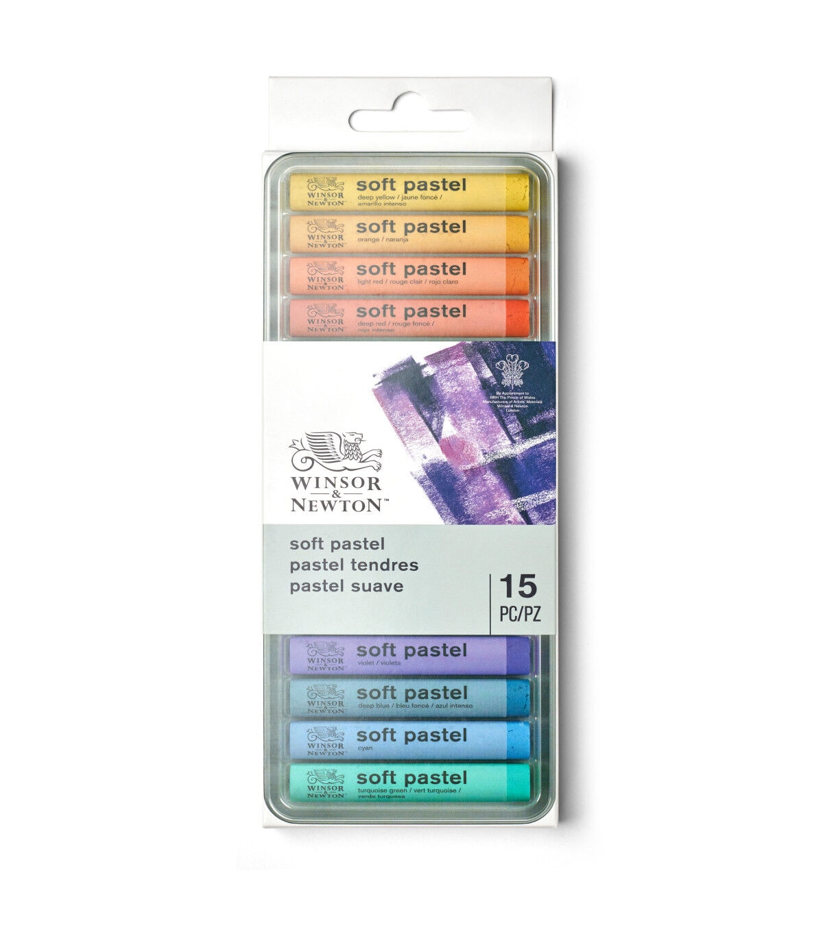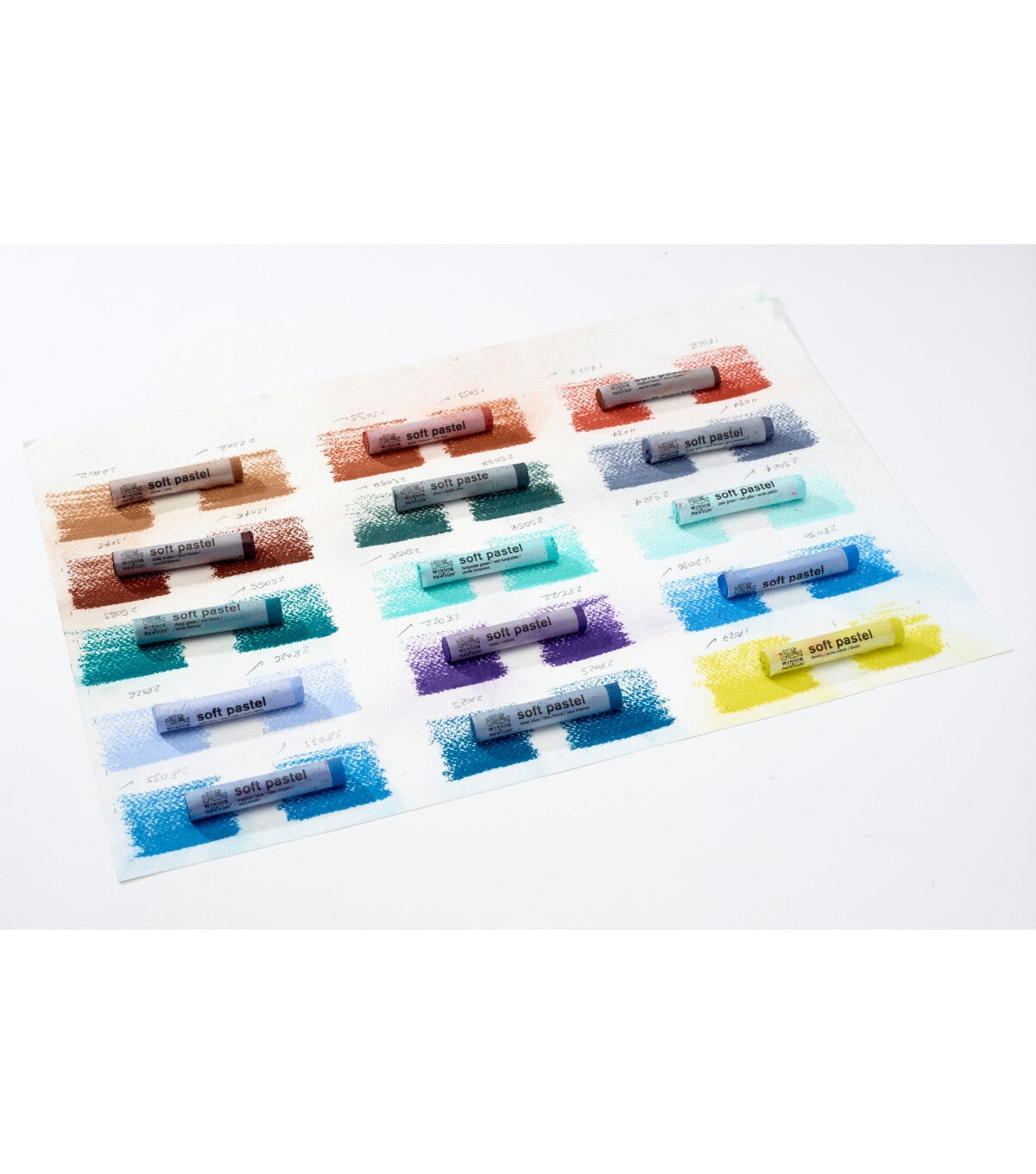 Soft pastels feature artist-grade pigments to provide outstanding lightfastness. The Introduction to Fine Art 15-Piece Set includes white, yellow, deep yellow, orange, light red, deep red, violet, deep blue, cyan, turquoise green, emerald, deep green, medium brown, ochre and black.