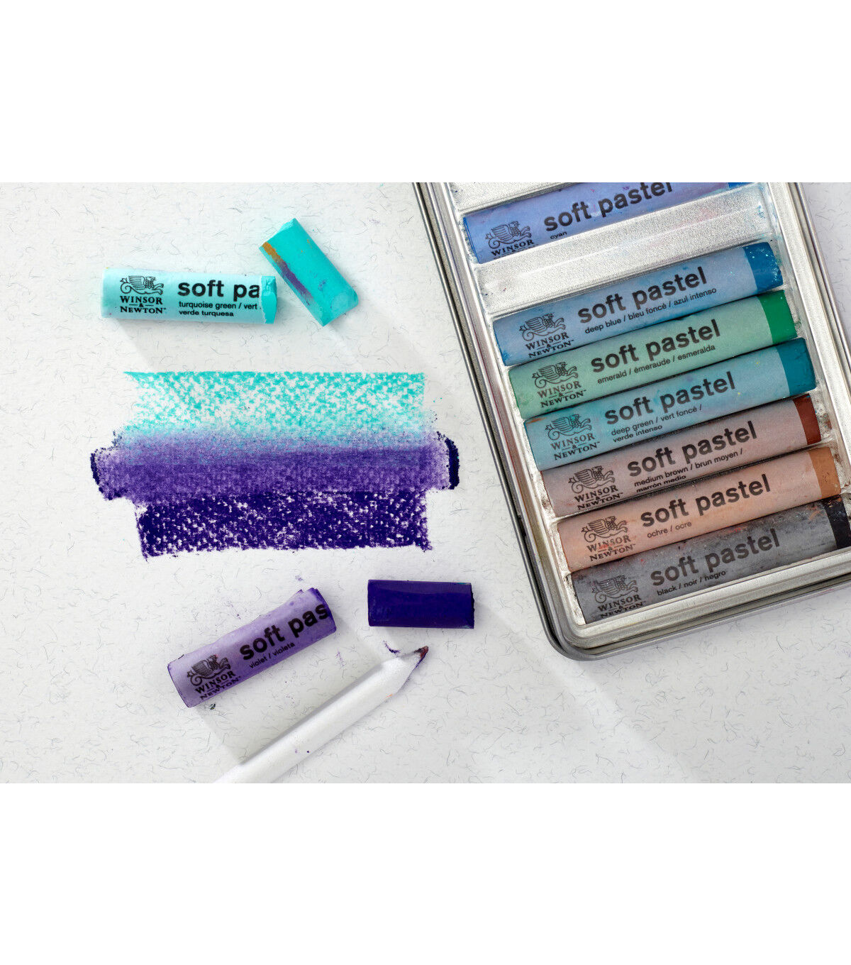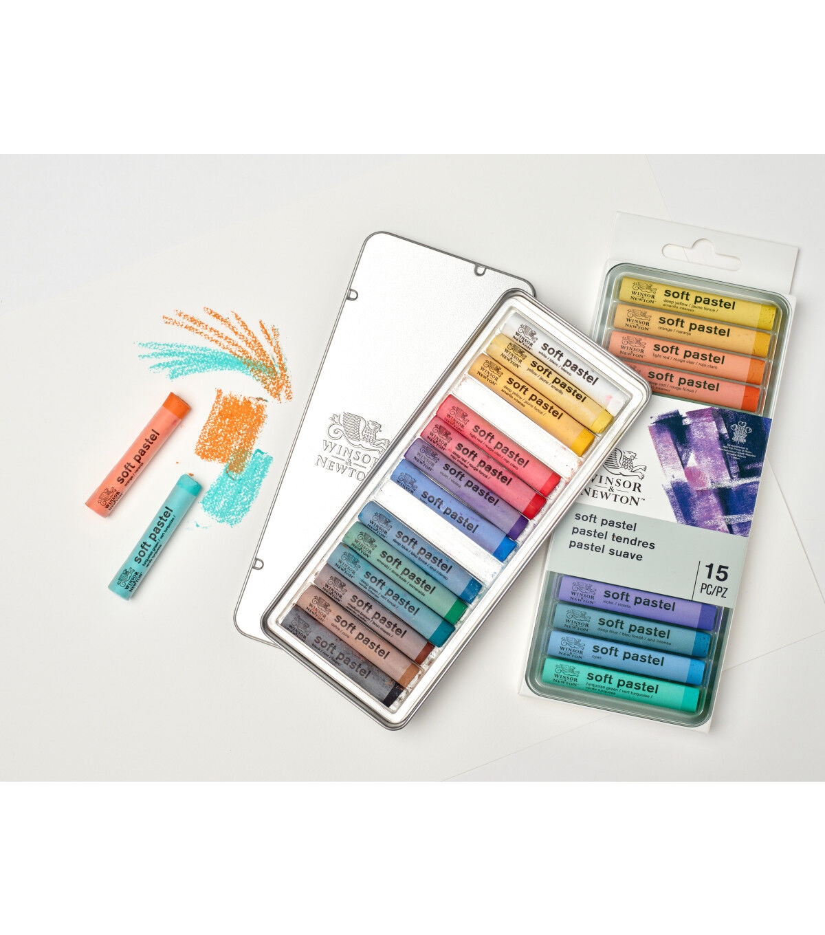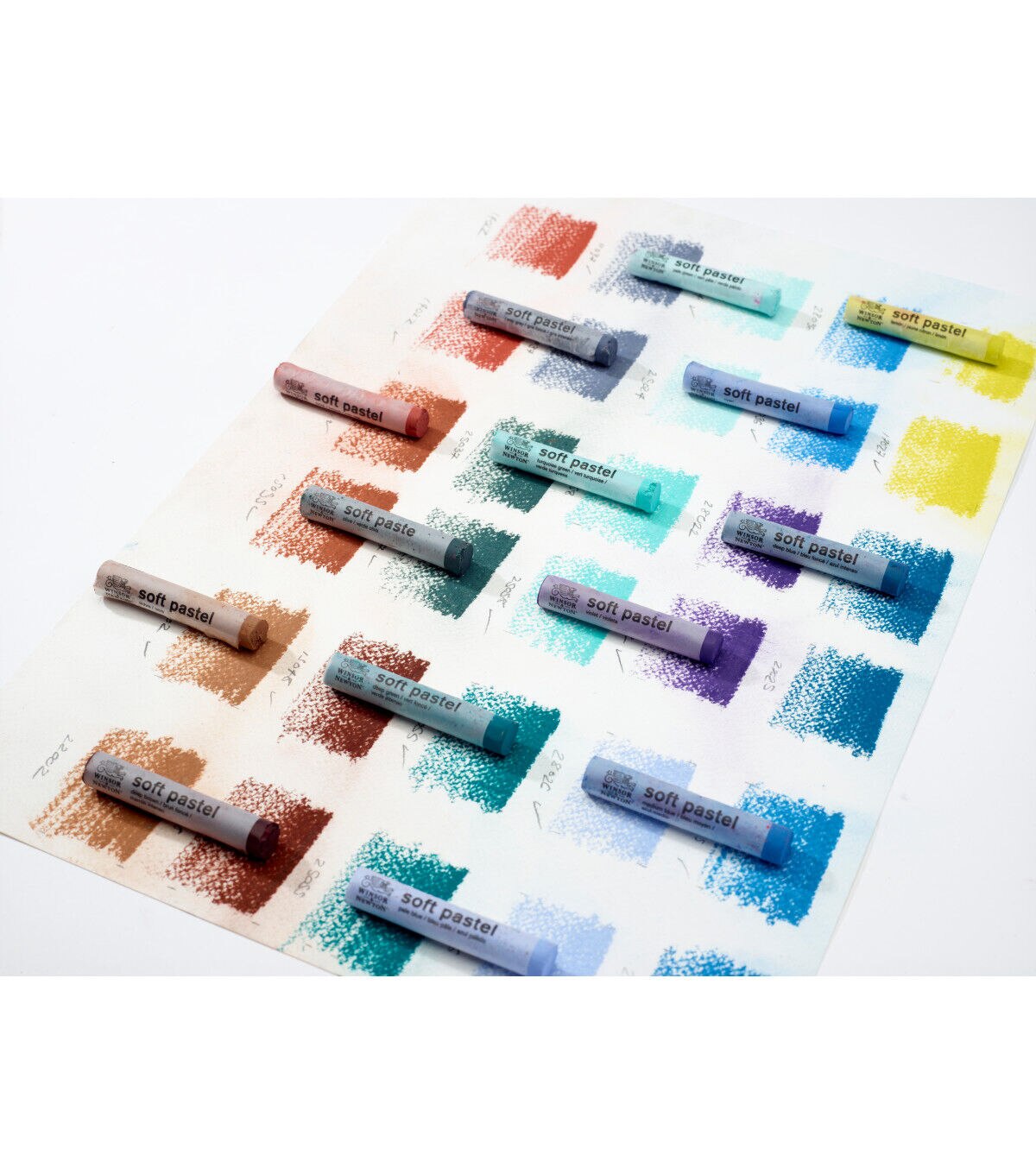 Soft pastels feature artist-grade pigments to provide outstanding lightfastness. The Introduction to Fine Art 15-Piece Set includes white, yellow, deep yellow, orange, light red, deep red, violet, deep blue, cyan, turquoise green, emerald, deep green, medium brown, ochre and black.