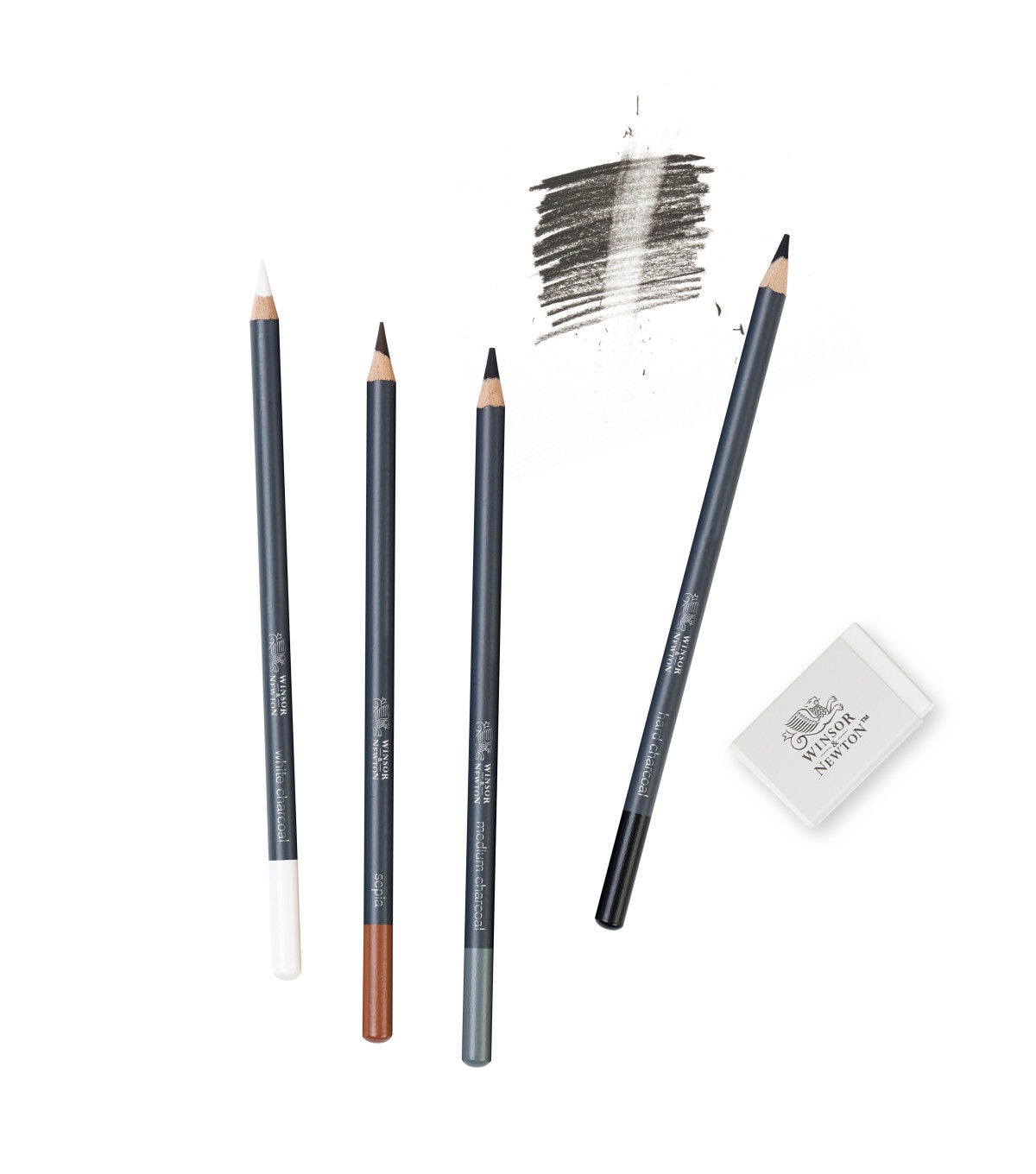Discover the pleasure of drawing and sketching with these carefully selected sets of essential pencils and tools. The classic colours and graphite pencils included blend easily to create evocative shading, making them ideal for striking life drawings and still life pieces. Brilliantly responsive, these high-quality pencils are also perfect for spontaneous sketching, allowing you to quickly capture movement and try out new ideas. Set contains white charcoal, Sepia, medium charcoal, hard charcoal and a white vinyl eraser eraser.