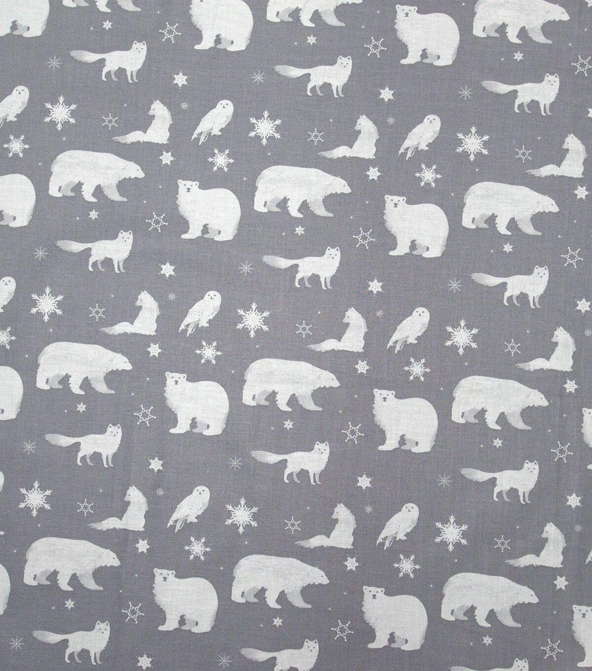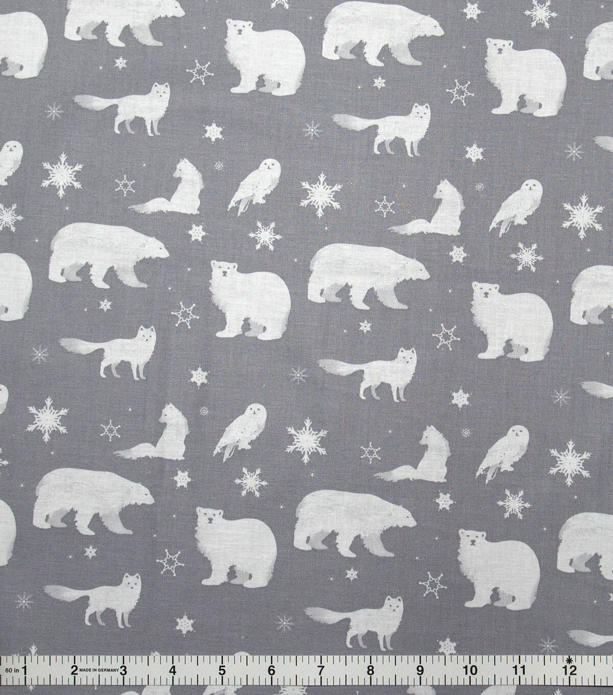 • Winter Animals & Snowflakes on Gray Christmas Cotton Fabric