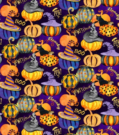 • Witchy Pumpkins Halloween Cotton Fabric