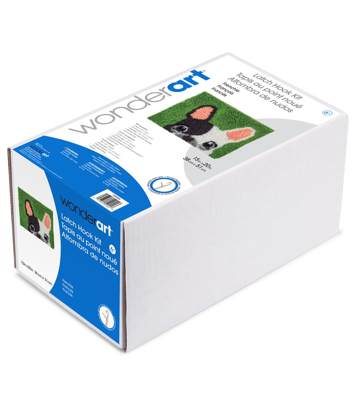 Latch Hook is a fun craft for all ages and skill levels. Small kits are perfect for beginners or quick weekend projects. Finished kits can be made into pillows, wall hangings and more. The 15” x 20” kits feature cotton rug canvas with larger holes and a grid marked on the canvas. This makes it easier for beginners to learn the technique and allows for quicker projects. Latch hook tool not included