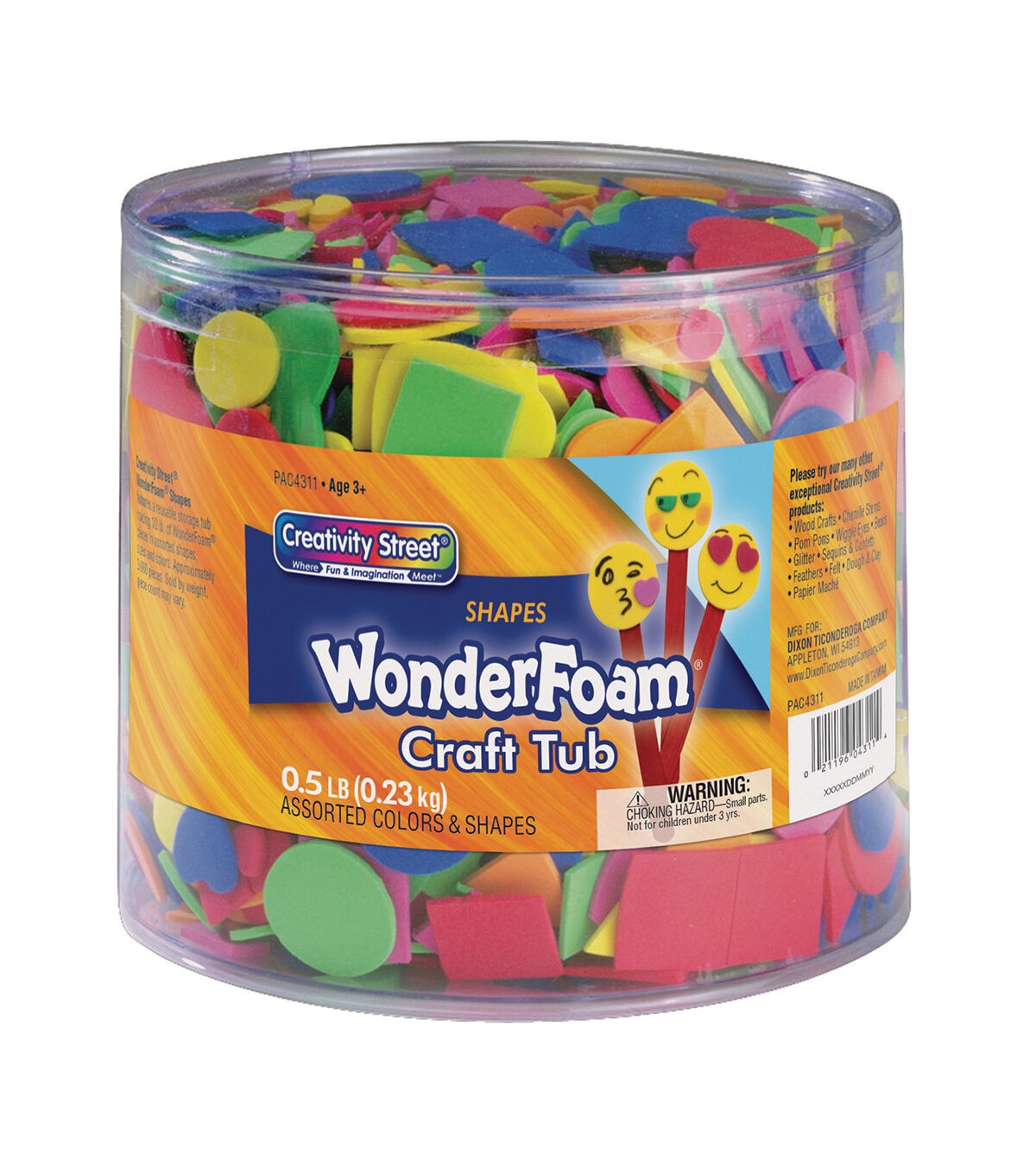 Neat and convenient, the reusable WonderFoam Tub of Foam Shapes holds half a pound of WonderFoam pieces in assorted shapes, sizes and colors. This pack contains approximately 3000 pieces. Add these brightly colored foam shapes to your art and craft projects. Find endless creative uses for WonderFoam such as costume additions, or for making vibrant pictures.