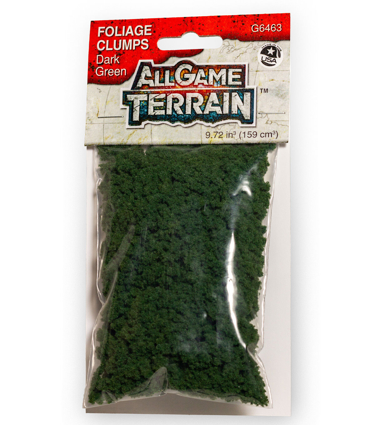 Dark Green Foliage Clumps make it easy to add bushes, shrubbery and trees to your terrain feature, miniature base or gaming boards. Ideal for vegetation in dense environments with plenty of moisture. Foliage Clumps can be plucked or pulled into any irregular size and shape. It is durable and perfect for gaming boards.
