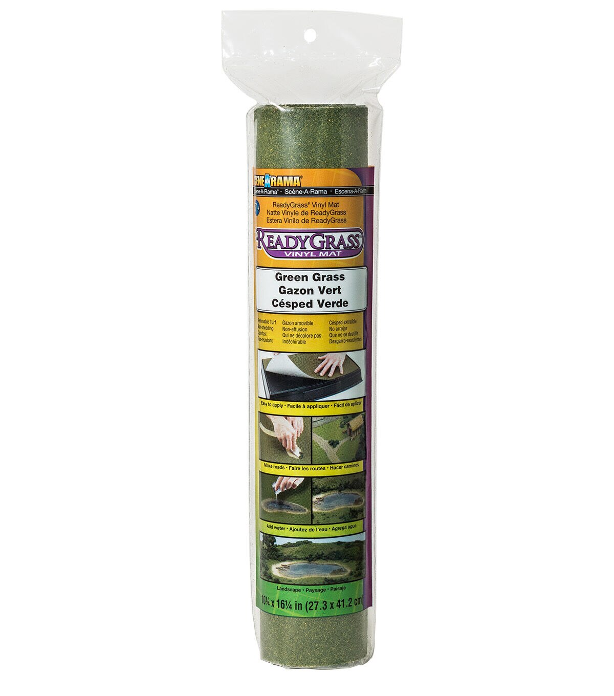 ReadyGrass Vinyl Mats are non-shedding, non-staining and tear-resistant. Use Green Grass to create early summer or wet climate grasses, or as a neat, flat surface for a gaming mat. Scrape off turf to make areas for roads, water or sidewalks.