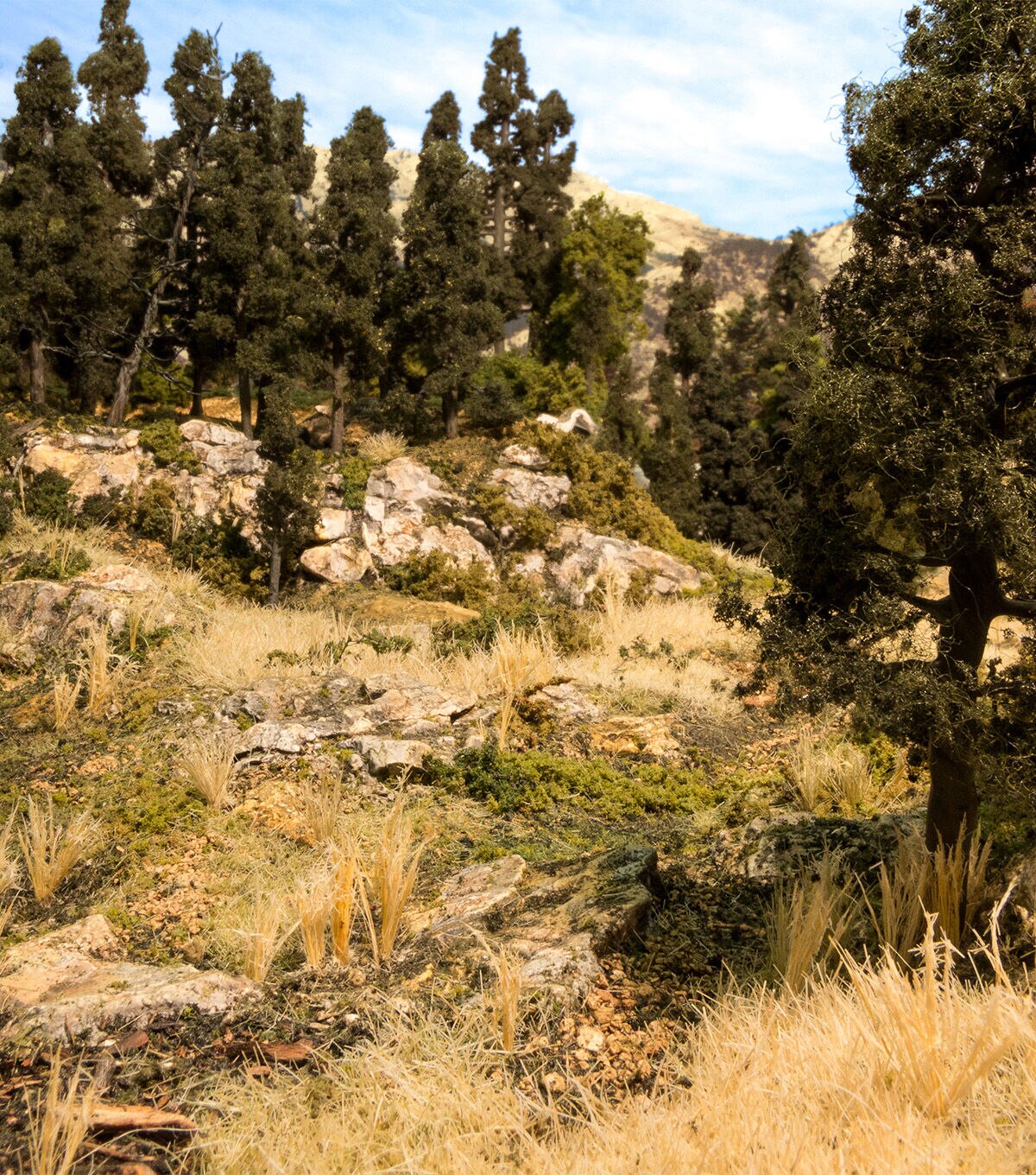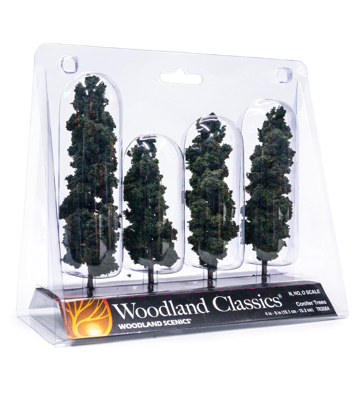 Add realistic Conifer Trees to a terrain piece or gaming board with a mountainous, wintry or forest setting. Modify trees by bending the branches or adding/removing small amounts of foliage. Install trees with Game-Tac or Magic-Tac. An optional base is included for temporary placement.
