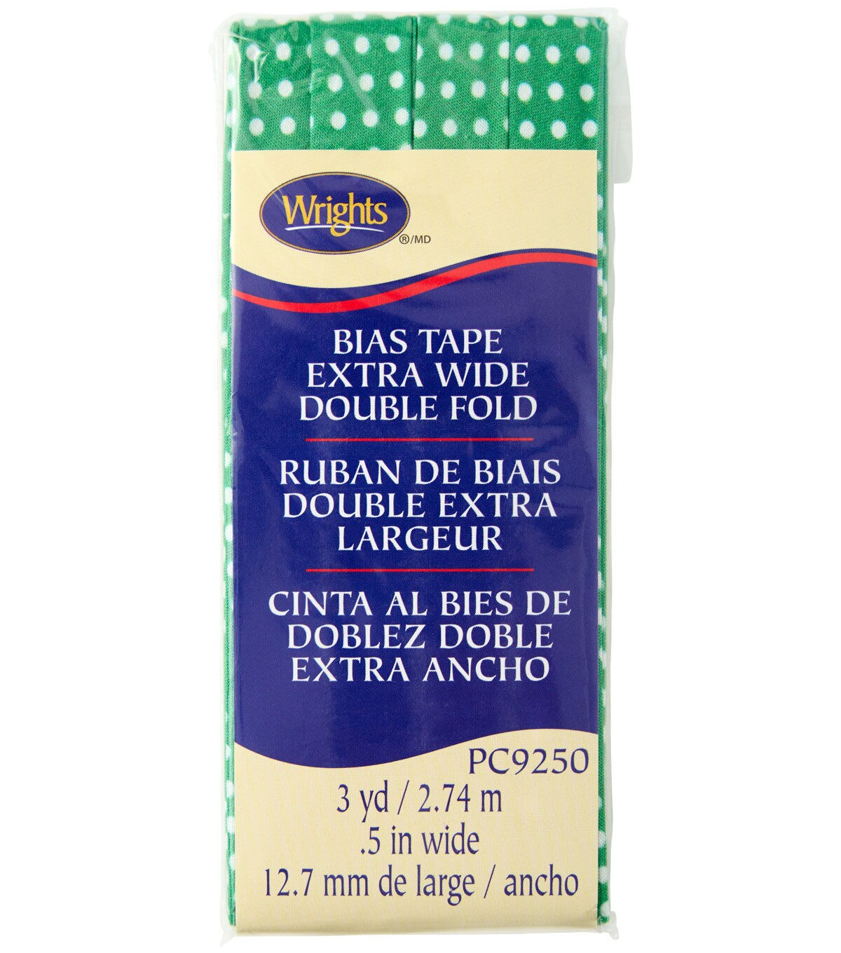 Add some holiday cheer to your sewing projects with the Wrights 1/2" x 3yd Christmas Dots on Green Cotton Double Fold Bias Tape. This qualitybias tape features a charming dot pattern in white against a green base, perfect for adding a touch of Christmas spirit to your handmade creations. Whether you're binding the edges of a top, creating festive buntings, or quilting, this bias tape is a versatile addition to your sewing essentials.