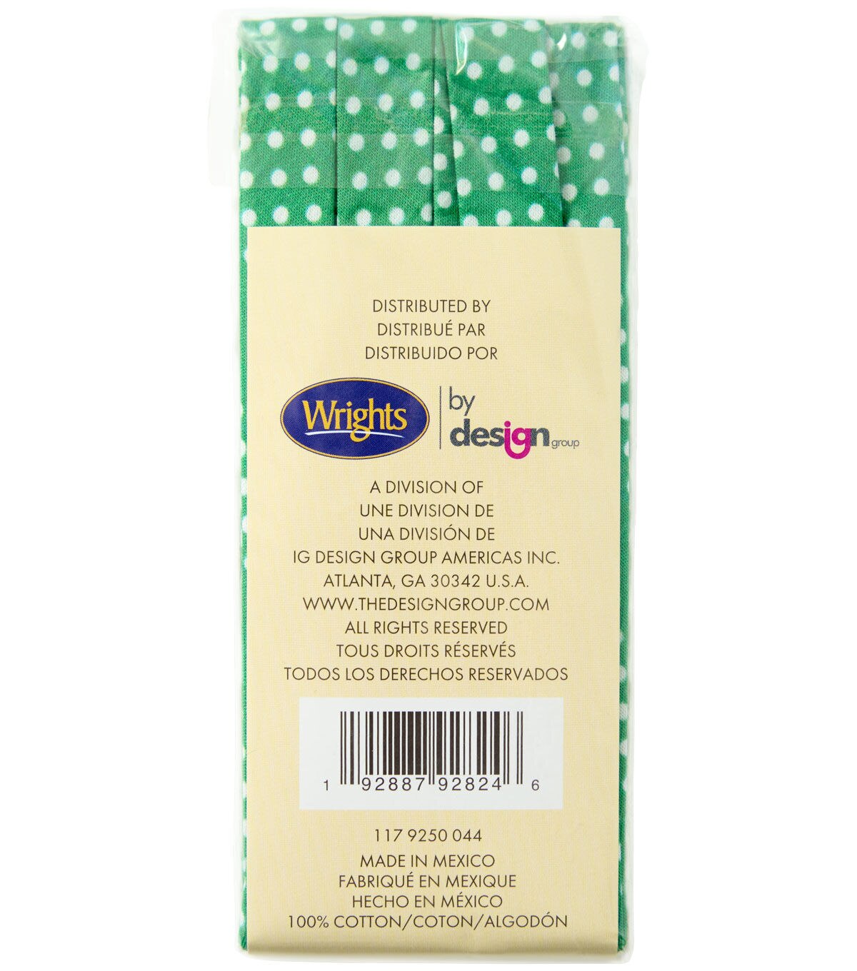 With 3 yards of bias tape, you'll have plenty to work with for all your holiday crafting needs. Made from 100% cotton, this bias tape is durable and long lasting, ensuring your projects will look great for years to come. Plus, it's made by the trusted brand Wrights, so you can trust the quality of your materials.