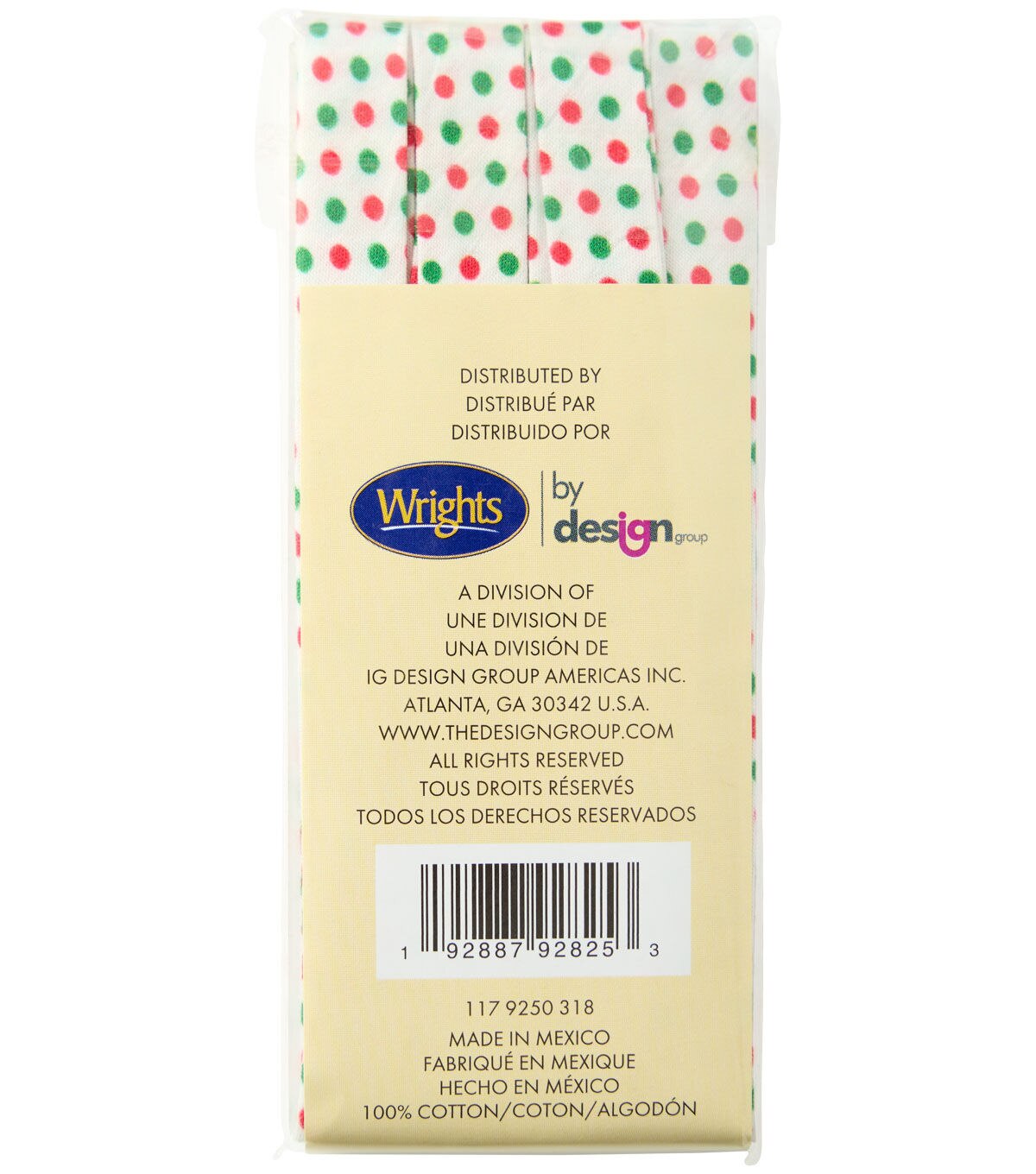 Add a touch of holiday cheer to your sewing projects with the Wrights 1/2" x 3yd Christmas Dots on White Cotton Double Fold Bias Tape. This qualitydouble-fold bias tape features a playful dot pattern in classic Christmas colors of red and green on a crisp white background. Whether you're adding piping or binding to your fabric creations like curtains or cushion covers, this bias tape is sure to make them stand out this holiday season.
