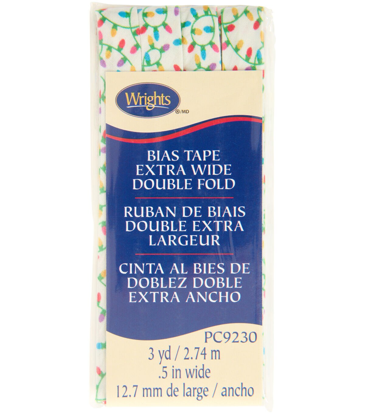 Add a touch of holiday cheer to your sewing projects with the Wrights Christmas Lights on White Double Fold Bias Tape. This qualitybias tape features a fun print of colorful lights on a white background, making it the perfect addition to any Christmas-themed fabric project. Not only is it perfect for binding raw edges, but it can also be used to add a festive finish to dresses, tops, shorts and more.