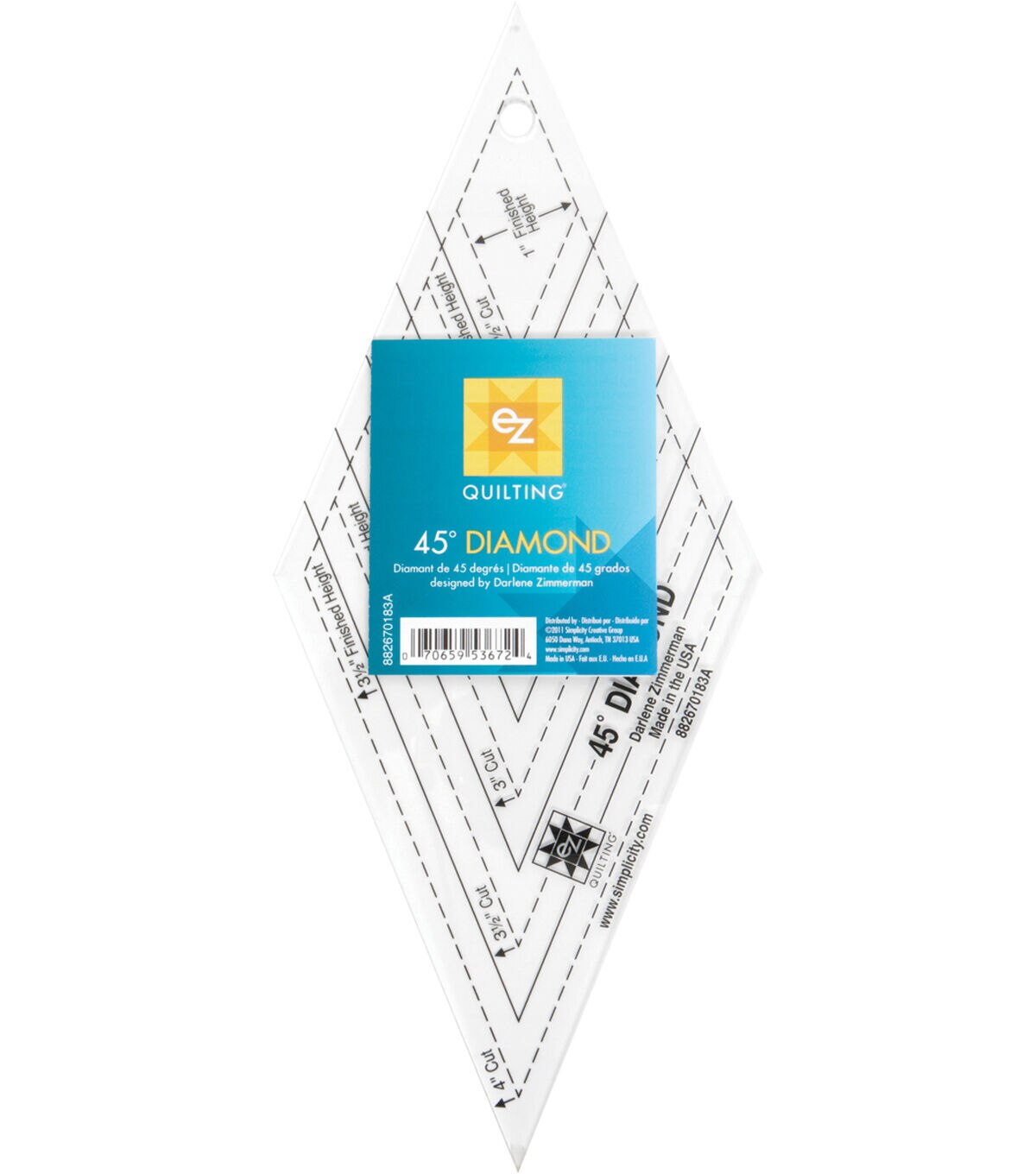 Use the EZ Quilting Darlene Zimmerman 45-degree Diamond Template to kick-start your quilting, sewing, crafting, scrapbooking and other creative projects. This colored acrylic template is ideal for use with a rotary cutter to create 45-degree diamond shapes in multiple sizes. You can also gift it to a loved one who is fond of quilting.