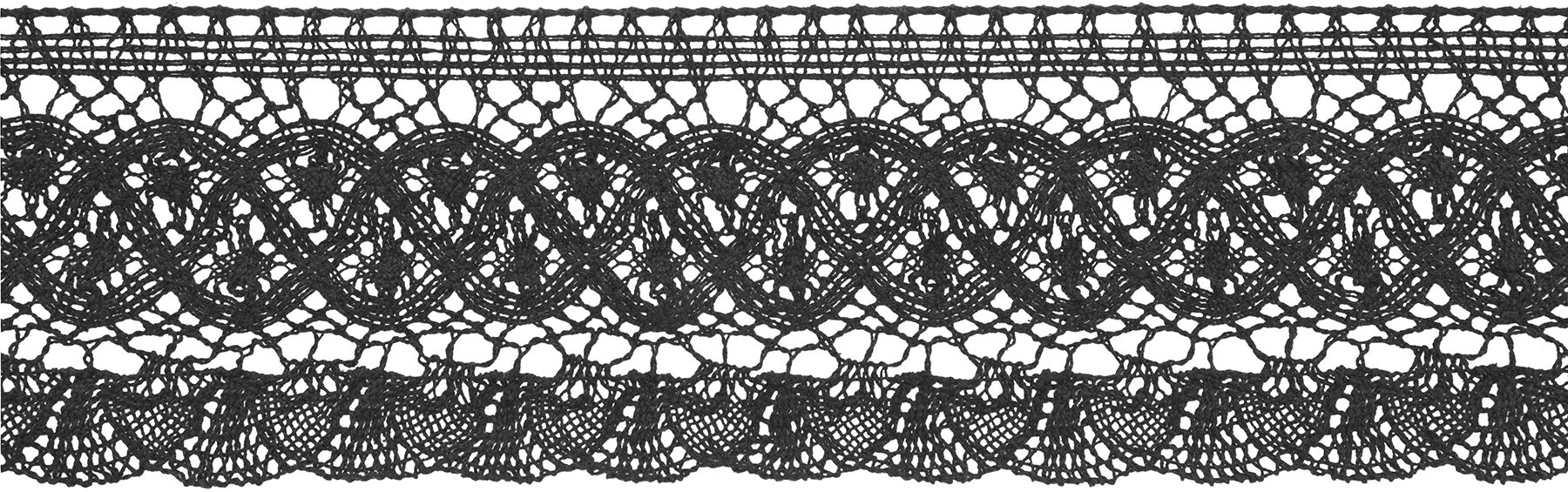 Accentuate your attire by embellishing it with the Wrights Large Fan Cluny Lace Trim-Black. This lace trim sports a black shade and an intricate pattern. Team it with coordinating sequins for added appeal. You can also add it to a gift basket, along with other trims, and present it to a sewing enthusiast.