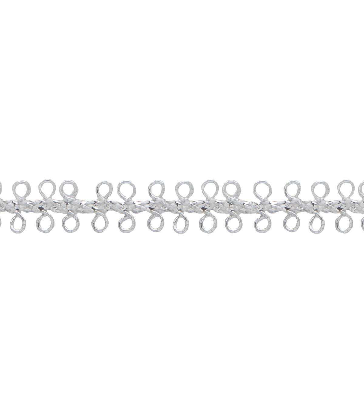 The metallic Wrights Loop Apparel Trim-Silver is perfect for embellishing corners, no mitering required. It is easy to apply, and looks great with velvet or dark rich fabric. This spool contains 4 feet of apparel trim.