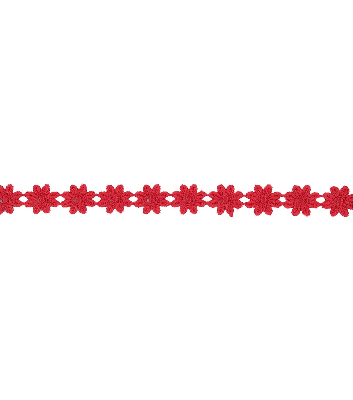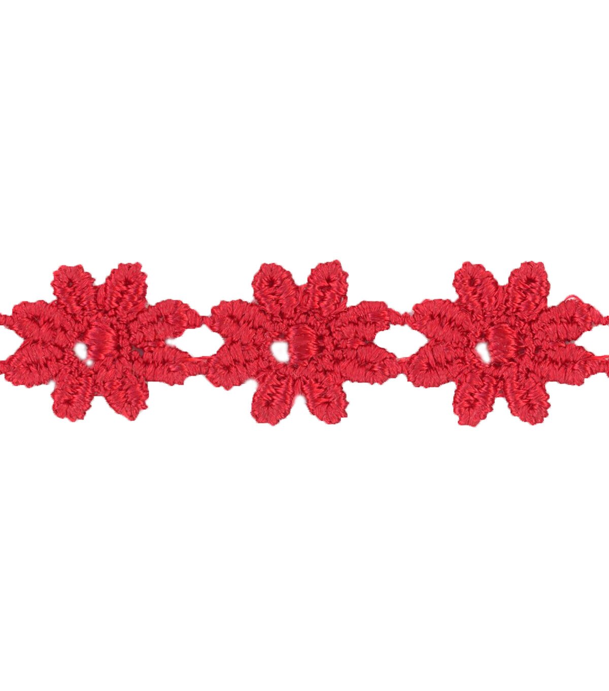 The Wrights Mini Daisy Venice Lace Trim-Red will add a lovely floral touch to any craft project. Use it to add a decorative trim to pillows, clothing, costumes, lampshades, cushions and more.