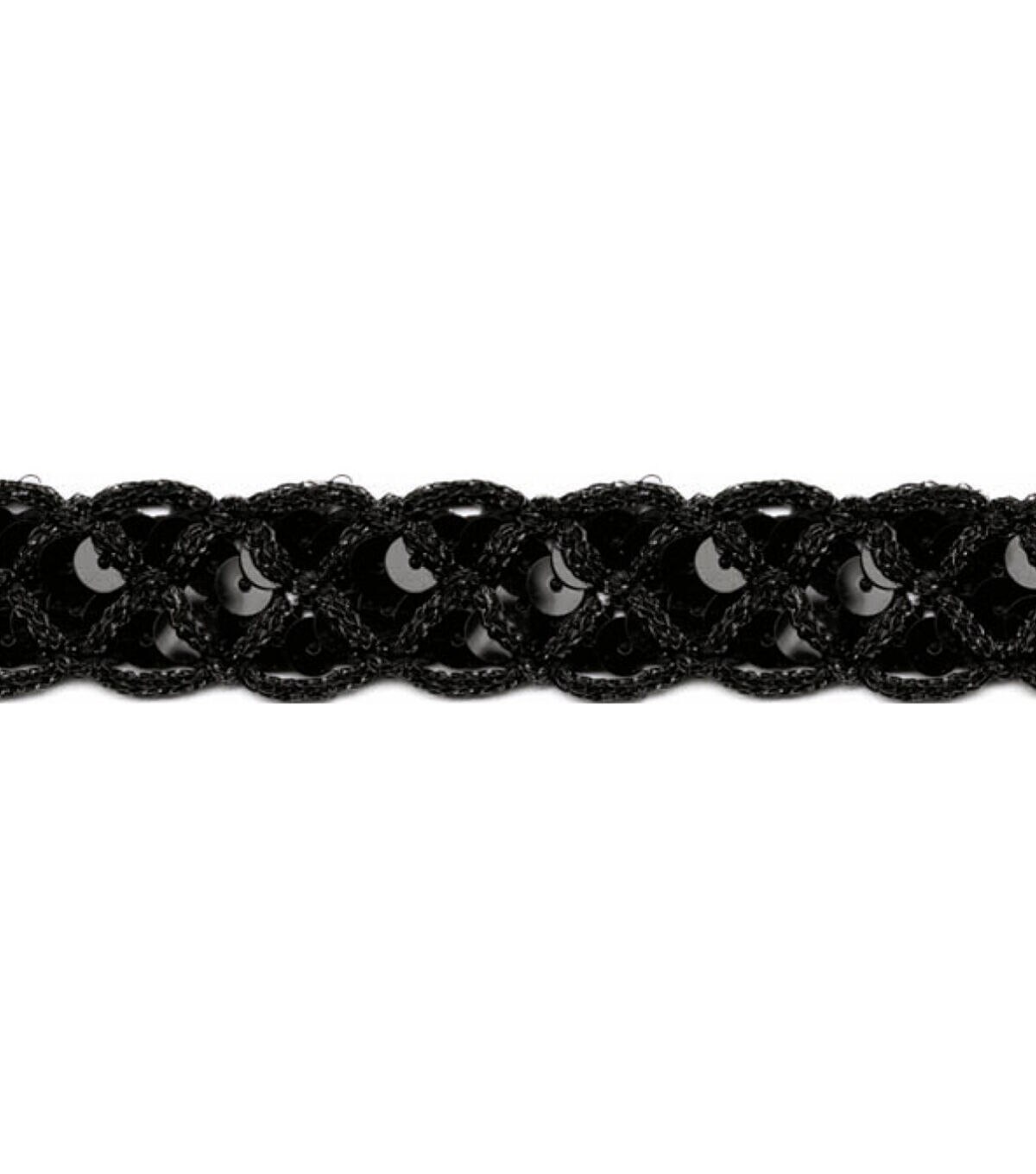 Use Wrights Sequined Trim with Starglow-Black as a decorative trim for a variety of projects. You can stitch this 12-yard plastic, polyester and acrylic trim onto the necklines or sleeves of simple tops and dresses to instantly jazz up their look.