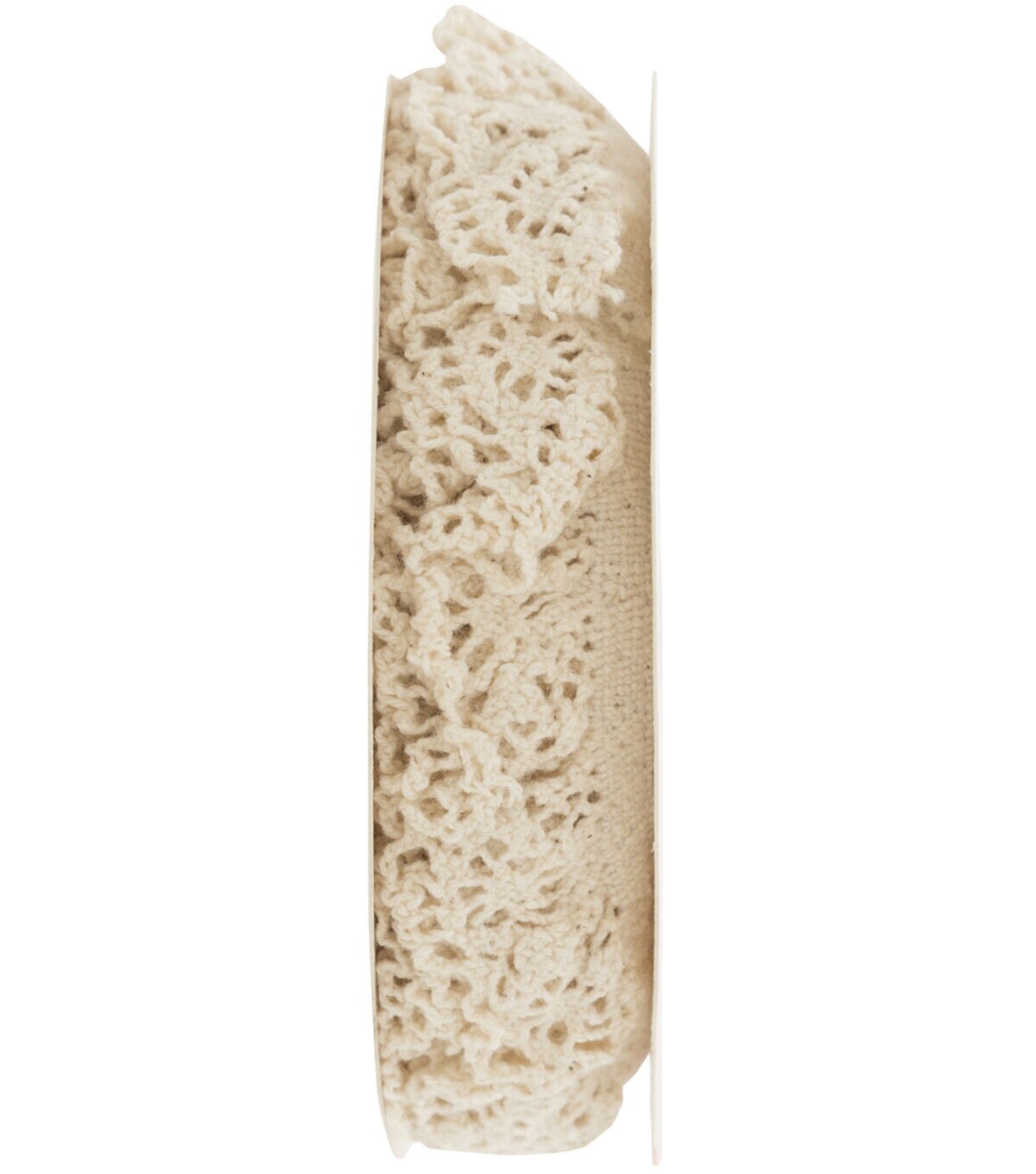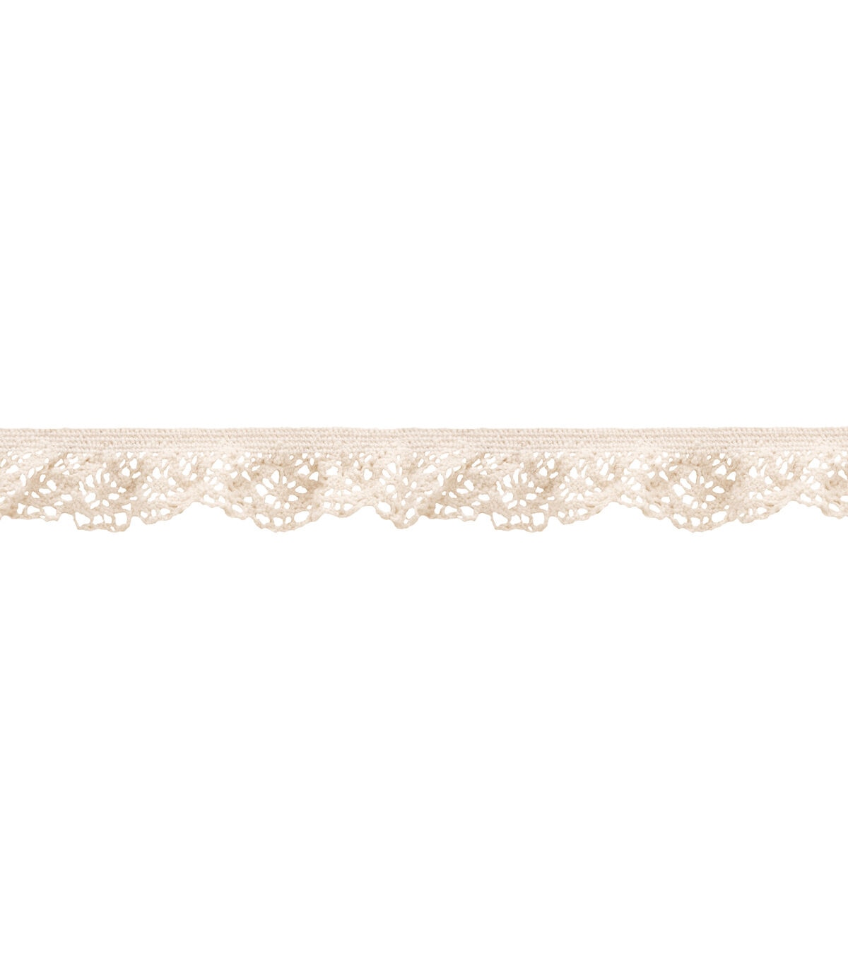 The Wrights Stretch Ruffle Trim with Cluny Edge-Natural is the perfect edging lace for knit fabrics because it has stretch in it. It is ideal for necklines or cap sleeve openings.