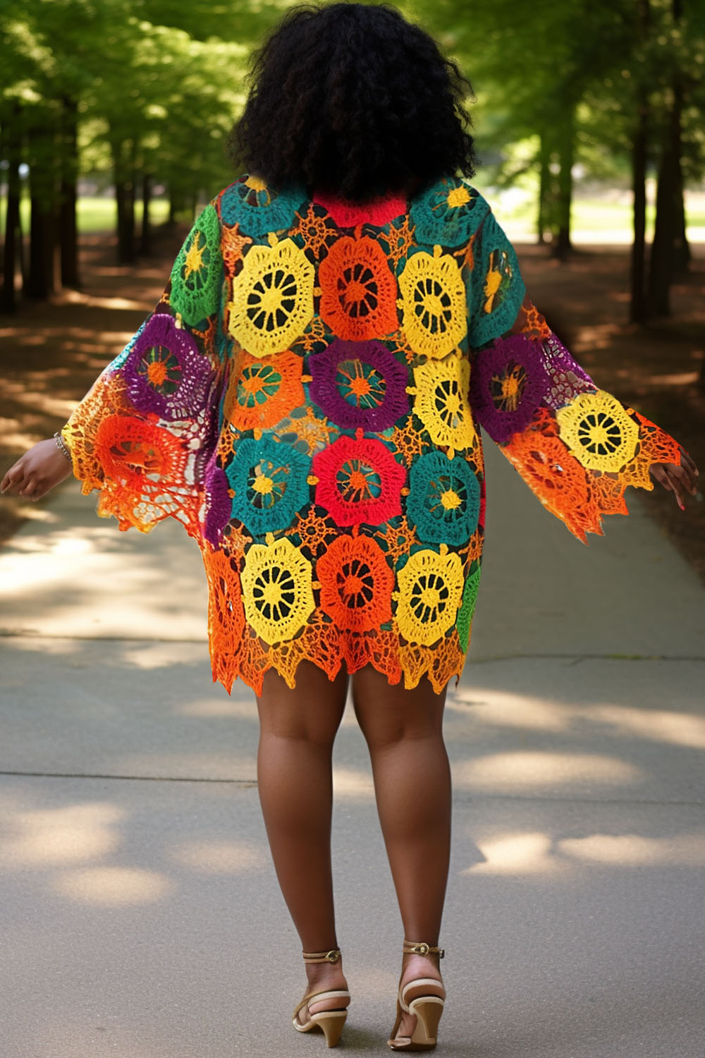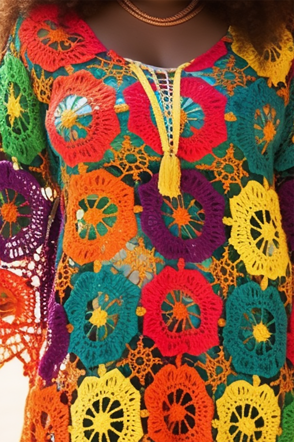 • Xpluswear Design Plus Size Beach Cover Ups Casual Multicolor Colorblock Spring Summer Long Sleeve Crochet Cover Ups