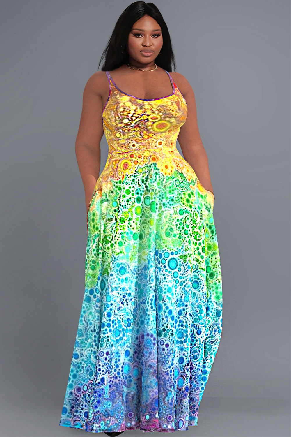• Xpluswear Design Plus Size Blue Casual Gradient Print With Pockets Maxi Dresses