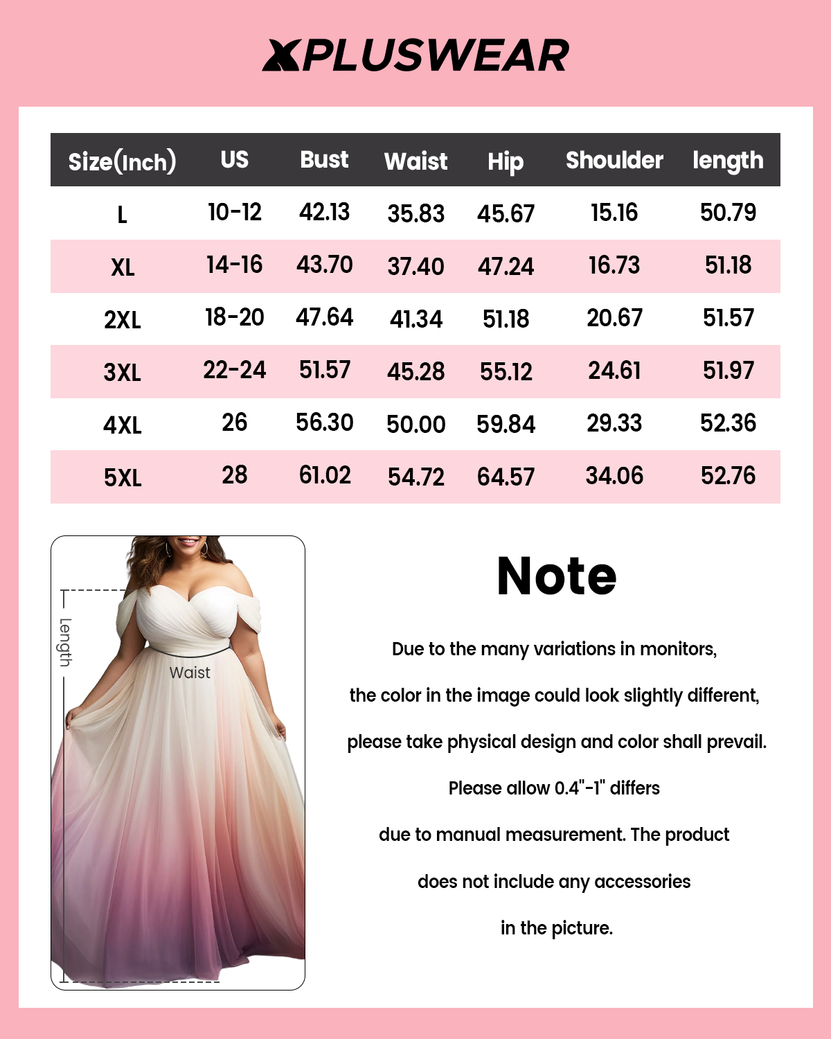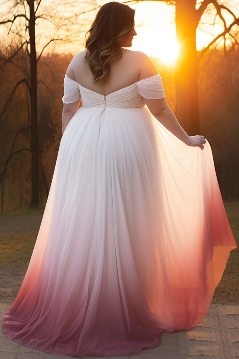 • Xpluswear Design Plus Size Formal Bridesmaid Elegant Pink Gradient Off The Shoulder Tulle Maxi Dresses