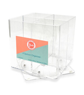 Keep all your makeup essentials organized using the Yafa 4 Compartment Spinner Square Organizer - Clear. It is designed with four sections that can be used to keep your brushes, beauty blenders, cotton wipes and more. You can also use this clear, spinner organizer to store your sewing and craft supplies.