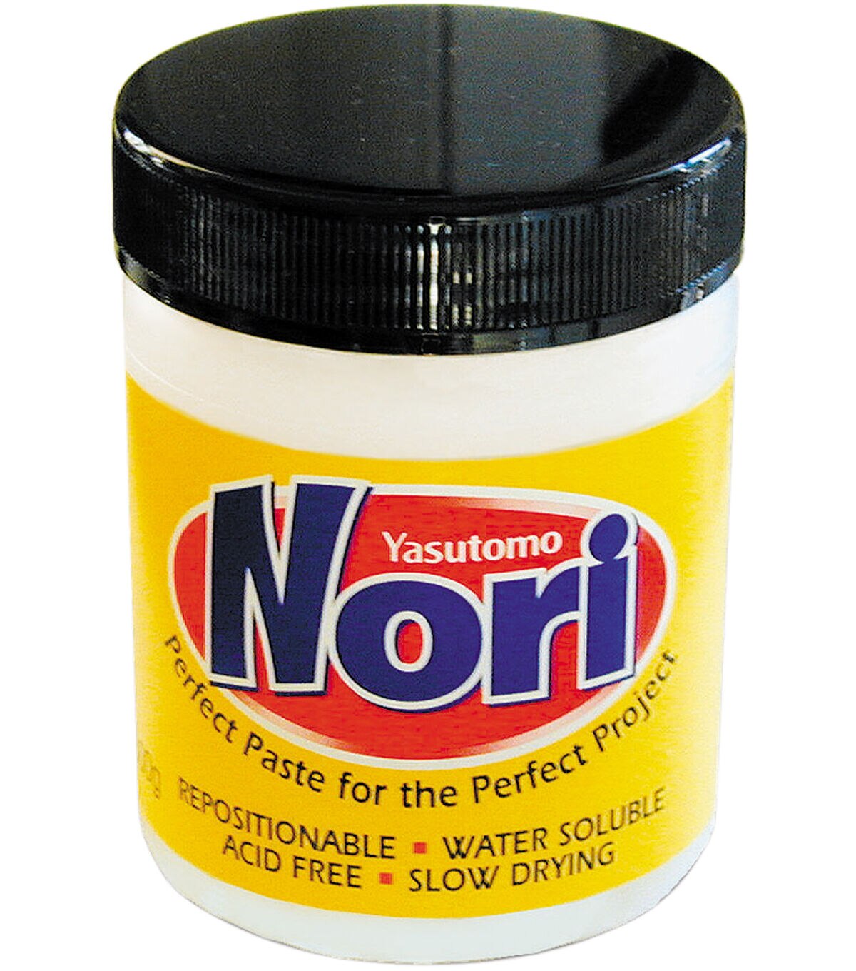 The Yasutomo Nori Paste is the perfect paste for the perfect project. It is a natural slow-drying starch adhesive that can be used in all kinds of school, art and craft applications. Use it on delicate papers and tissues as it will not soak through fabrics, and can be diluted with water as needed. Repositionable while wet, it dries to a clear finish and does not leave any sticky residue. Not designed for use on vellum, plastic or metal. This pack contains one 10-ounce tub of acid free, non-toxic Nori Paste.