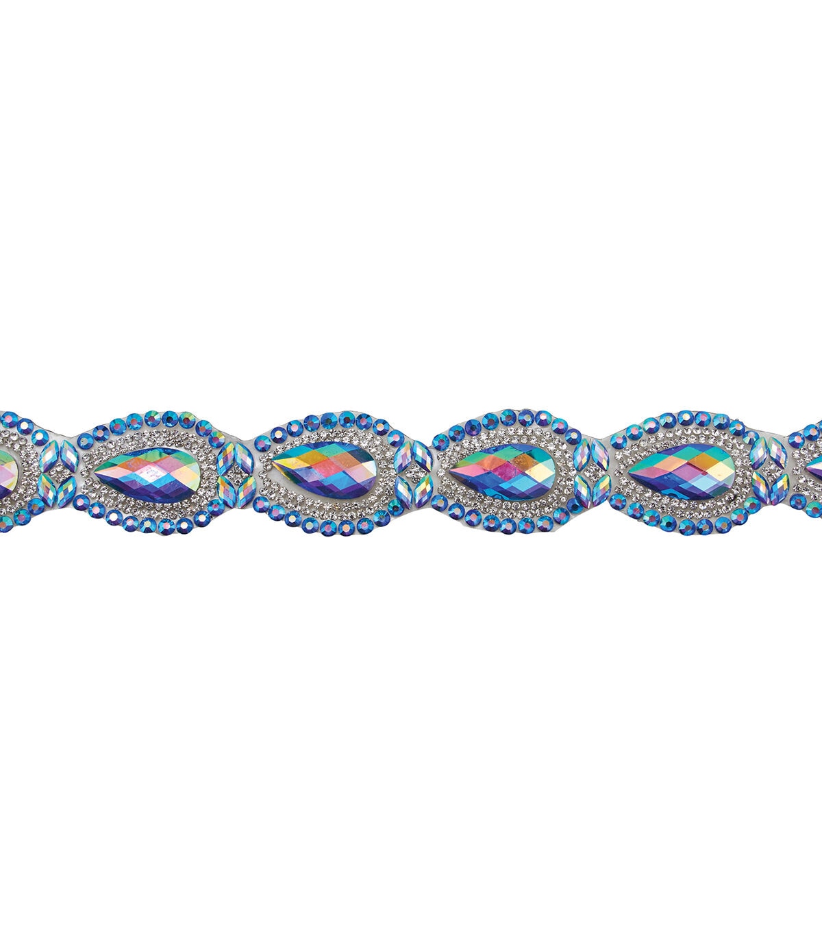 The Yaya Han Iron-on Crystal Princess Trim-Blue is perfect for both modern and classic garments with ethereal, royal, medieval, fantasy and elegant designs. This iron-on rhinestone trim is ideal to embellish dresses, accessories, jackets, separates and more.