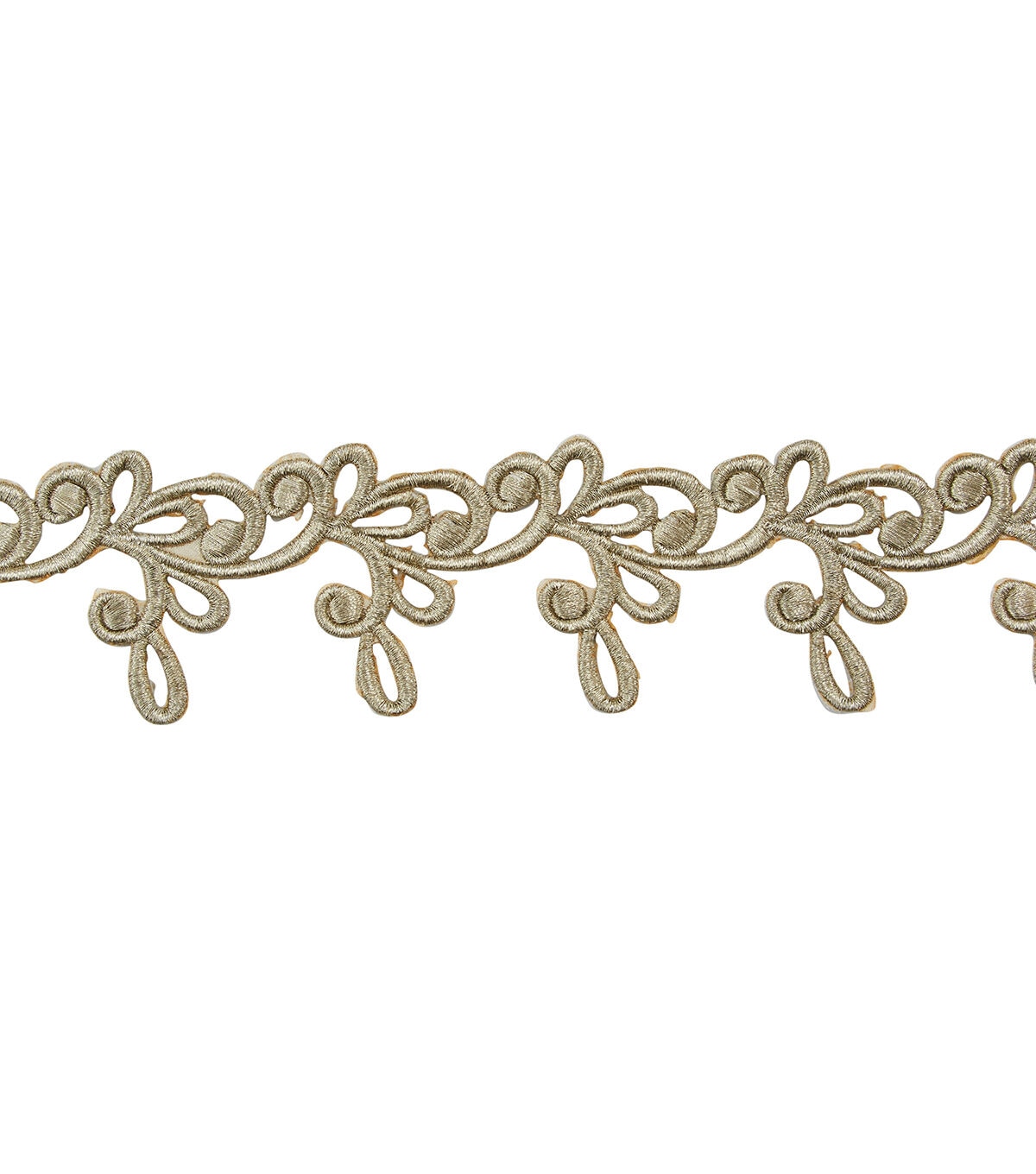 The Yaya Han Iron-on Milan Swirl Trim-Champagne is perfect for both modern and classic garments. This iron-on trim can be used for embellishing outfits and accessories.