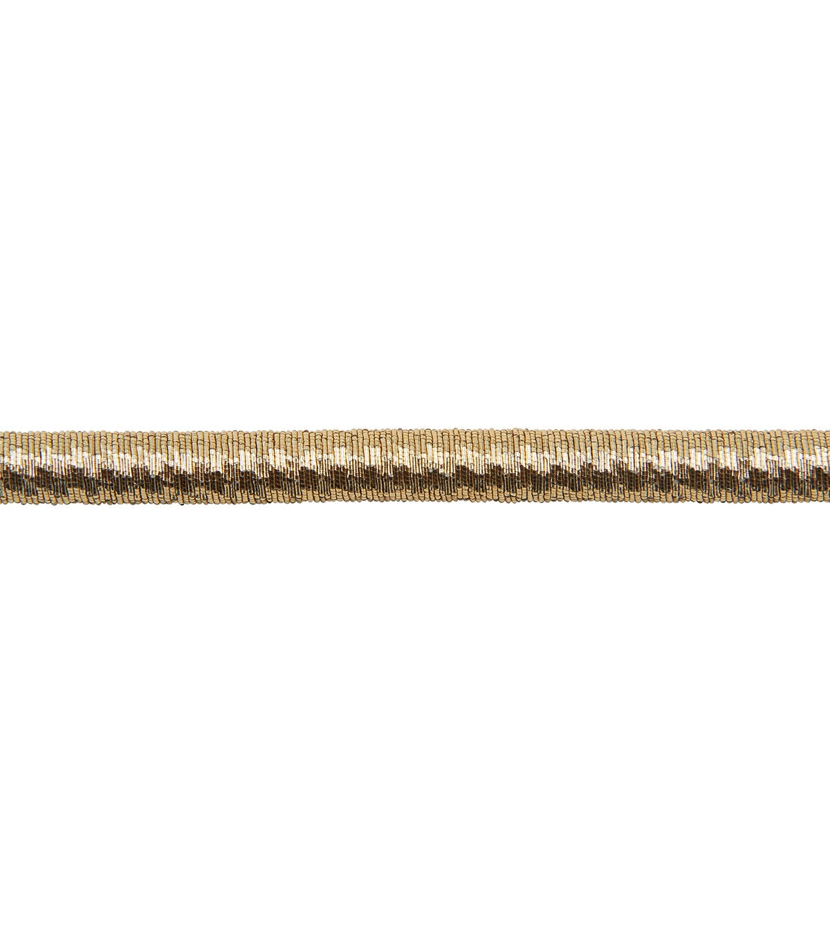 The Yaya Han Sew-on Dual Tribal Metal Cording Trim-Gold is perfect for both fashion and costume garments in modern and classic designs. This sew-on metallic trim is ideal to embellish separates, gown, jackets and other fabric pieces, make purse or as belting.