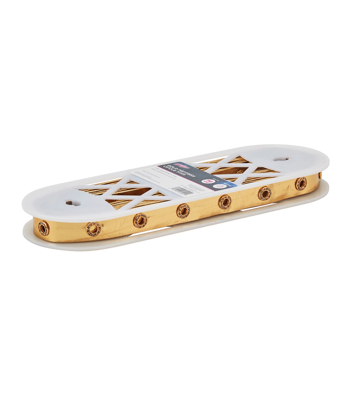 Adorn your modern or classic styled garments with the studded Yaya Han Sew-on Fantasy Circle Trim-Gold. Be it punk, medieval, fantasy or elegant in design, your outfit is sure to stand out with this bright-colored decorative trim. You can also use it to embellish jewelry, separates, accessories and unique fashion items, and can be used as a decorative belt.