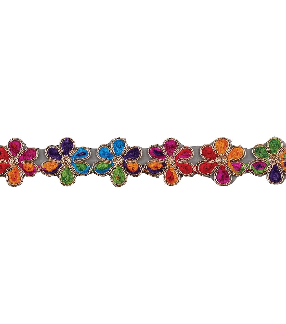 The Yaya Han Sew-on Tribal Chenille Flower Trim is perfect for both fashion and costume garments in modern and classic designs. This sew-on colorful trim is ideal to embellish separates, gown, jackets and other fabric pieces, make purse or as belting.