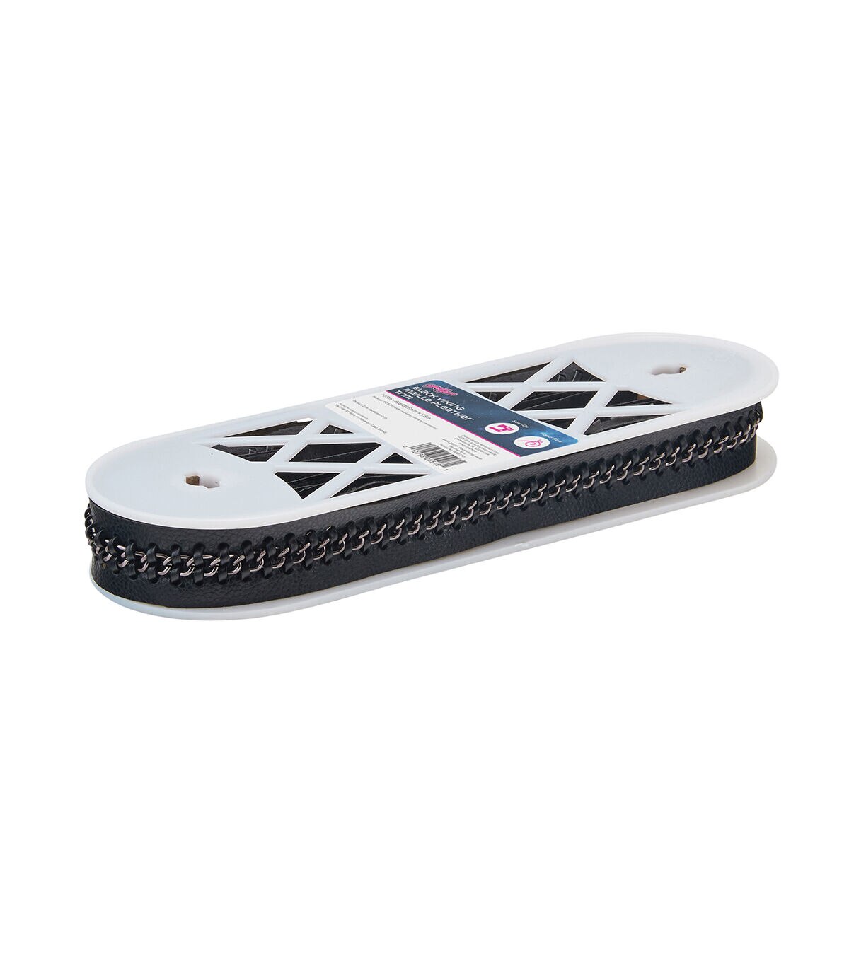 The Yaya Han Sew-on Viking Maille Pleather Trim-Black is perfect for both fashion and costume garments in punk, Gothic, fantasy, historical, steampunk and elegant designs. This sew-on pleather trim is ideal to bind edges, embellish separates, gown, jackets and other fabric pieces, make purse or as belting.