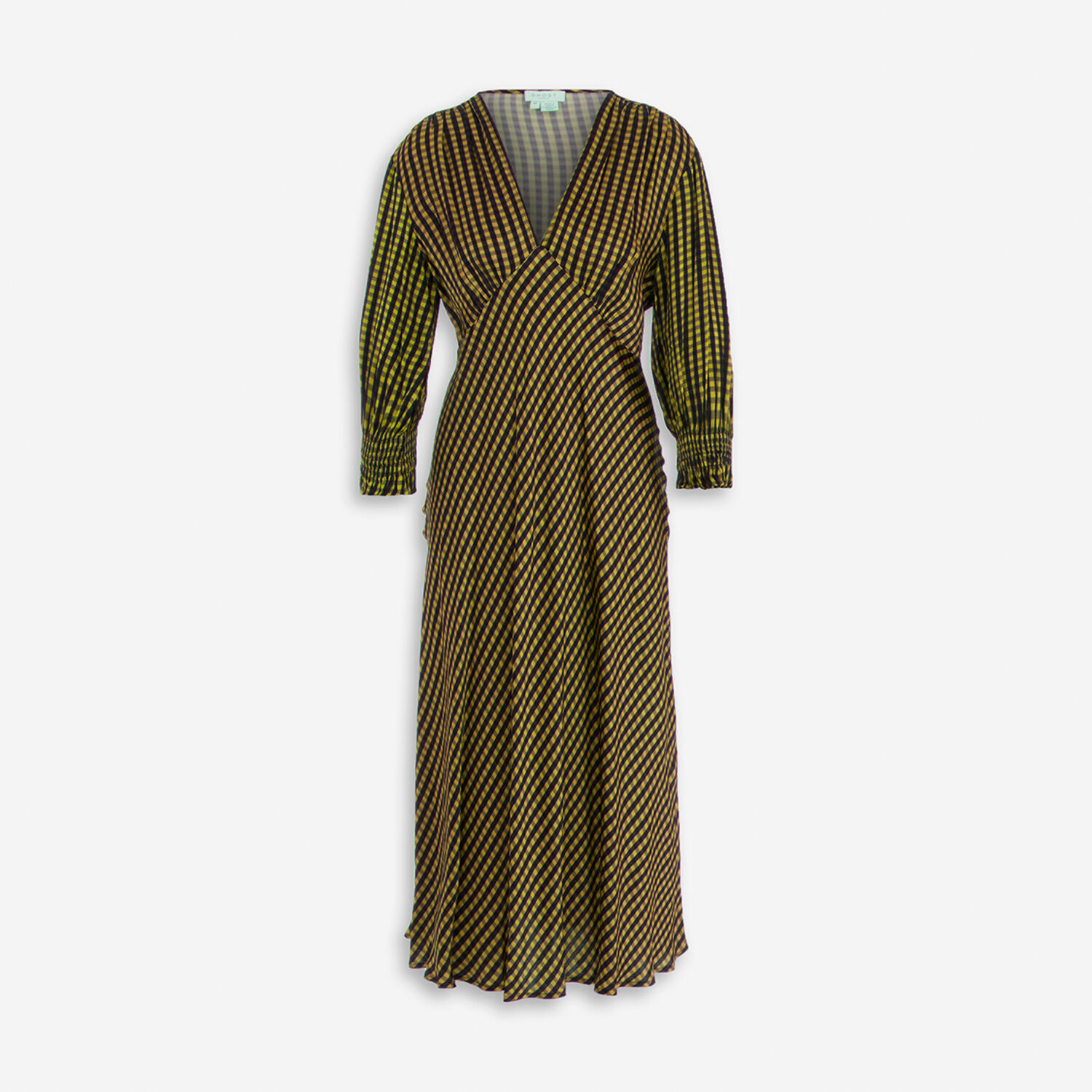 • Yellow & Black Gingham Print Midi Dress