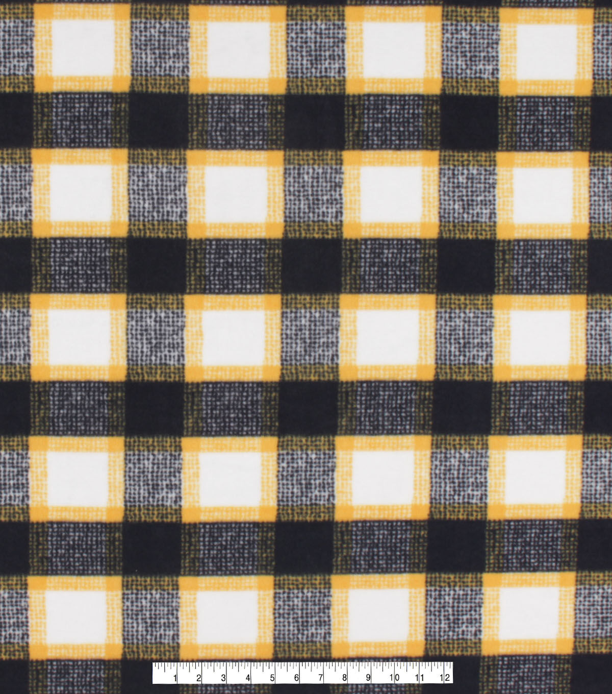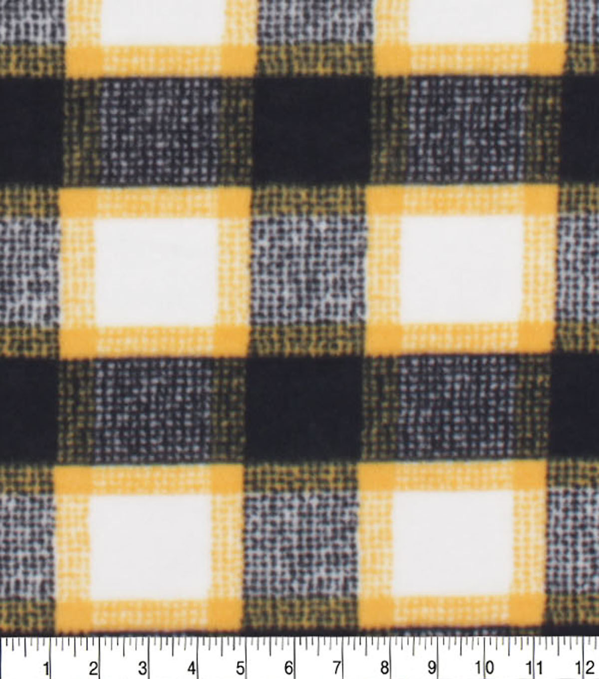Yellow & Black Textured Plaid Anti Pill Fleece Fabric