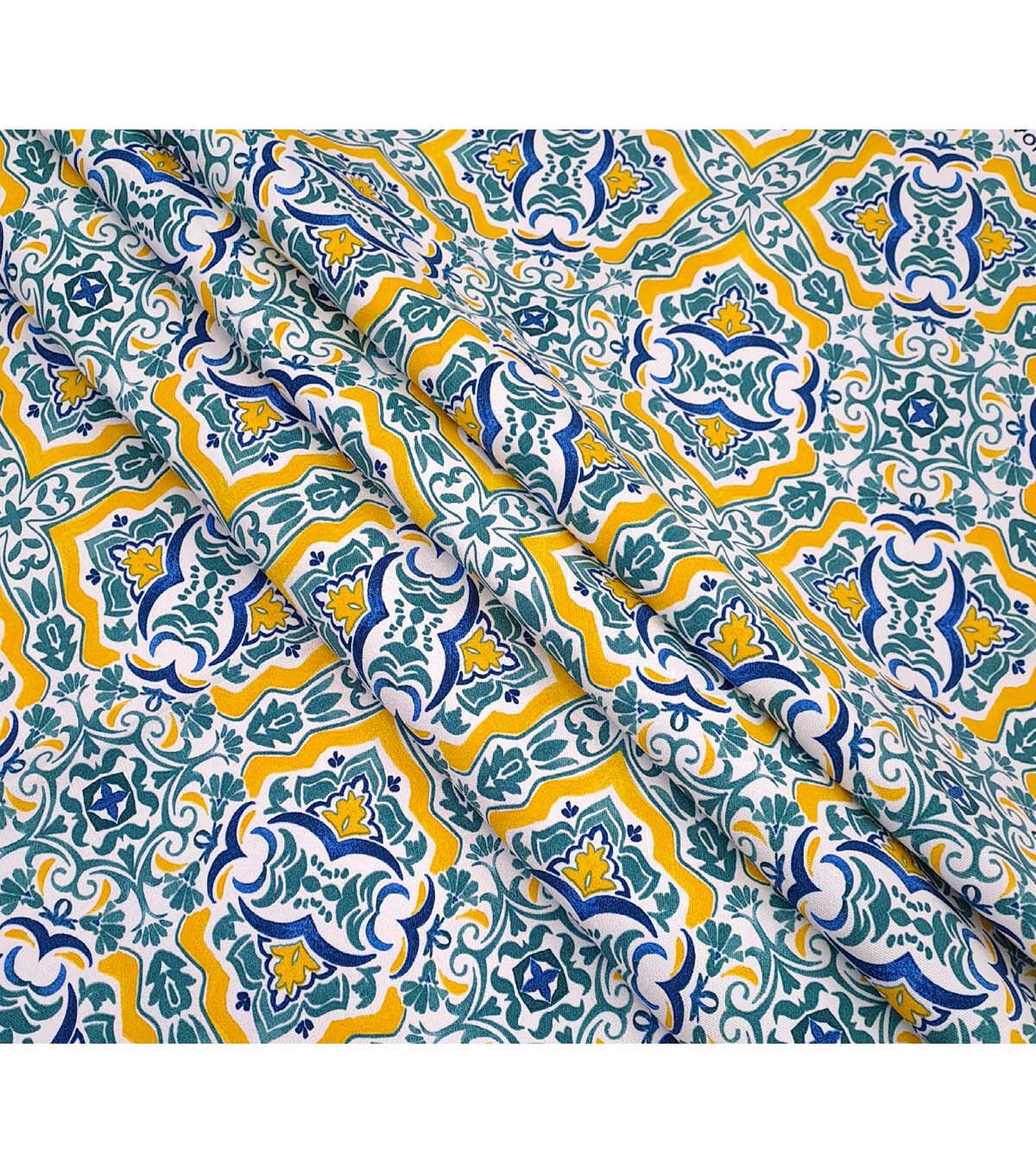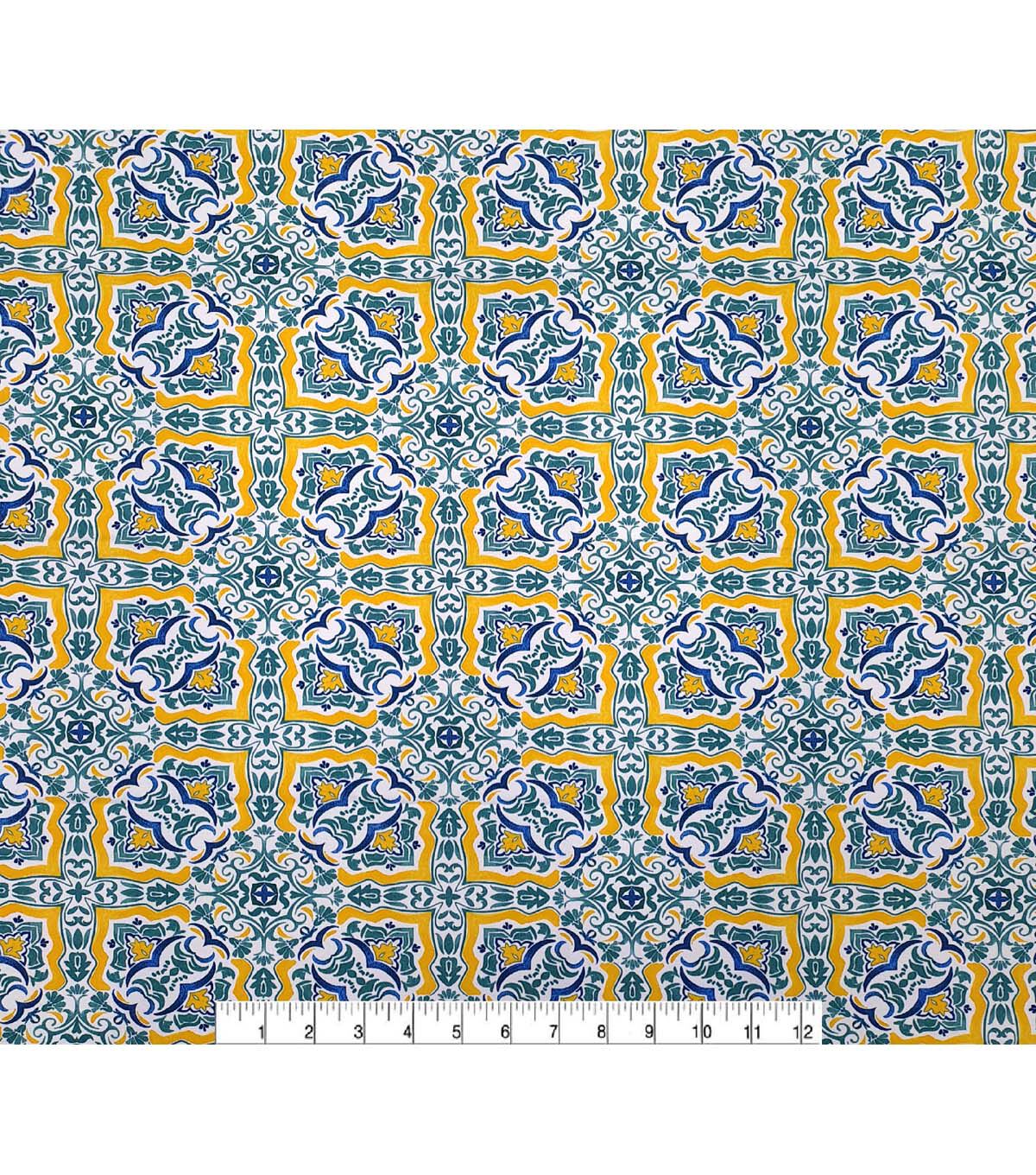 Elevate your outdoor decor with the vibrant and eye-catching Yellow & Blue Mosaic Italian Coast Outdoor Fabric. Printed on 100% polyester, this fabric features a DWR finish that ensures it can withstand the elements. Whether you're creating outdoor cushions, pillows, or even a tablecloth, this fabric is sure to impress.